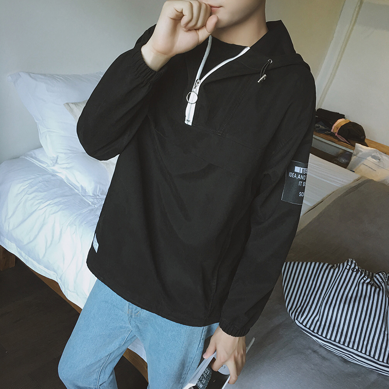 / 原創日系復古質感面料連帽寬松衛衣韓版港風外套男