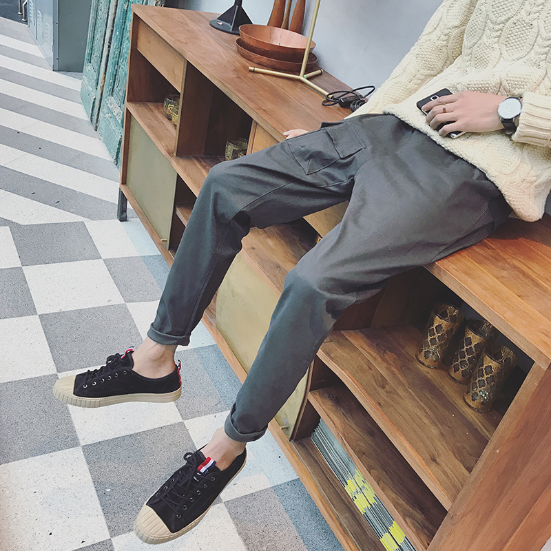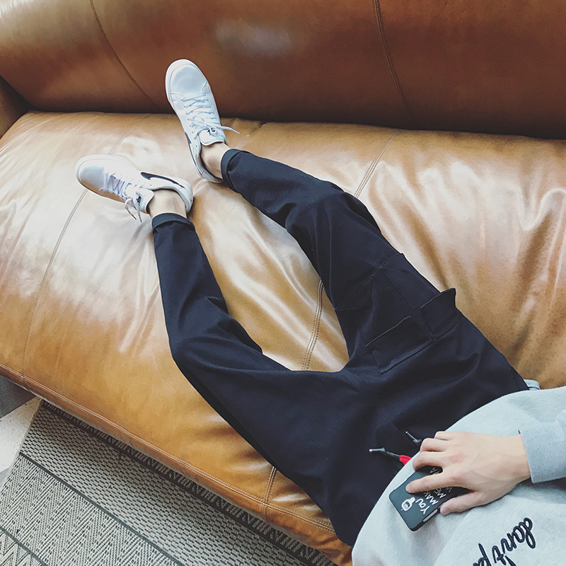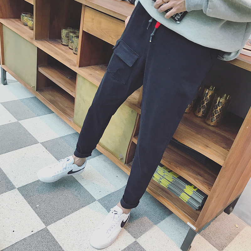 / 男裝日系復古男士錐形褲小腳哈倫褲韓版系繩休閑褲