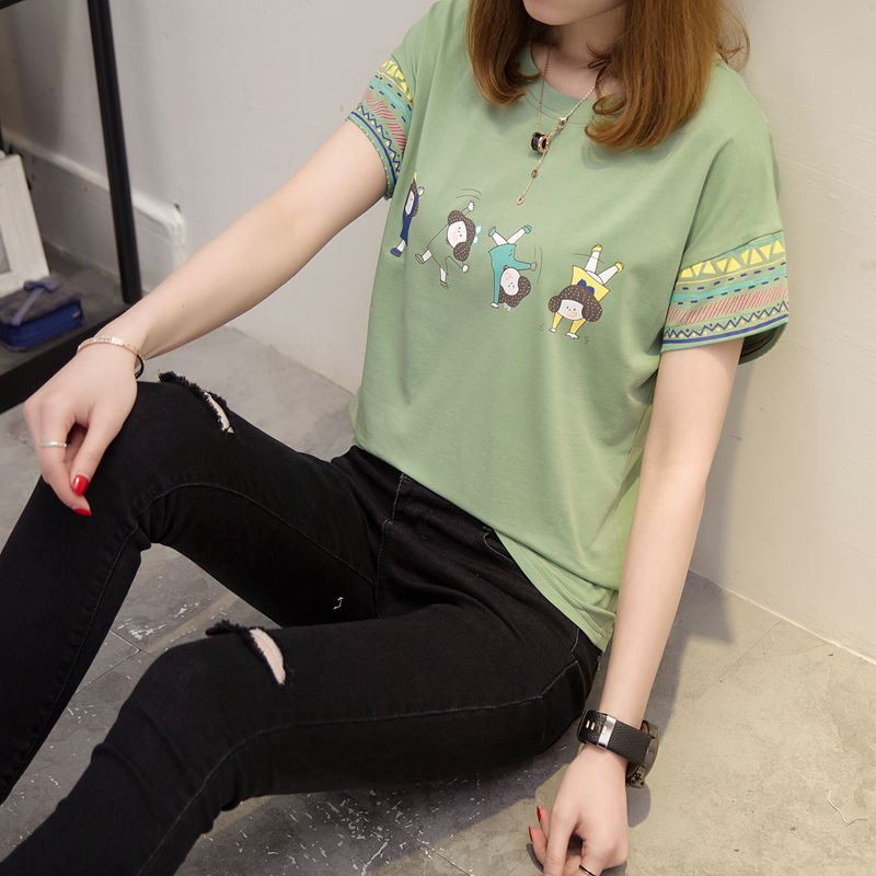 / 春裝韓版女裝寬松印花套頭寬松t恤女打底衫短袖上衣女夏新款