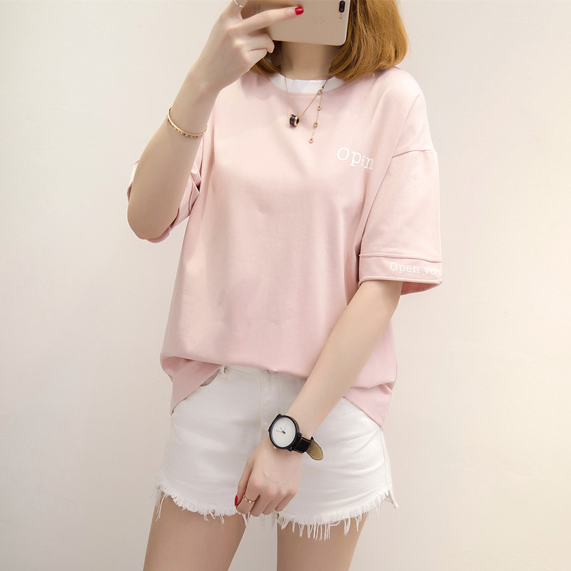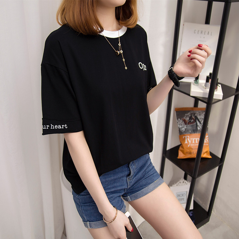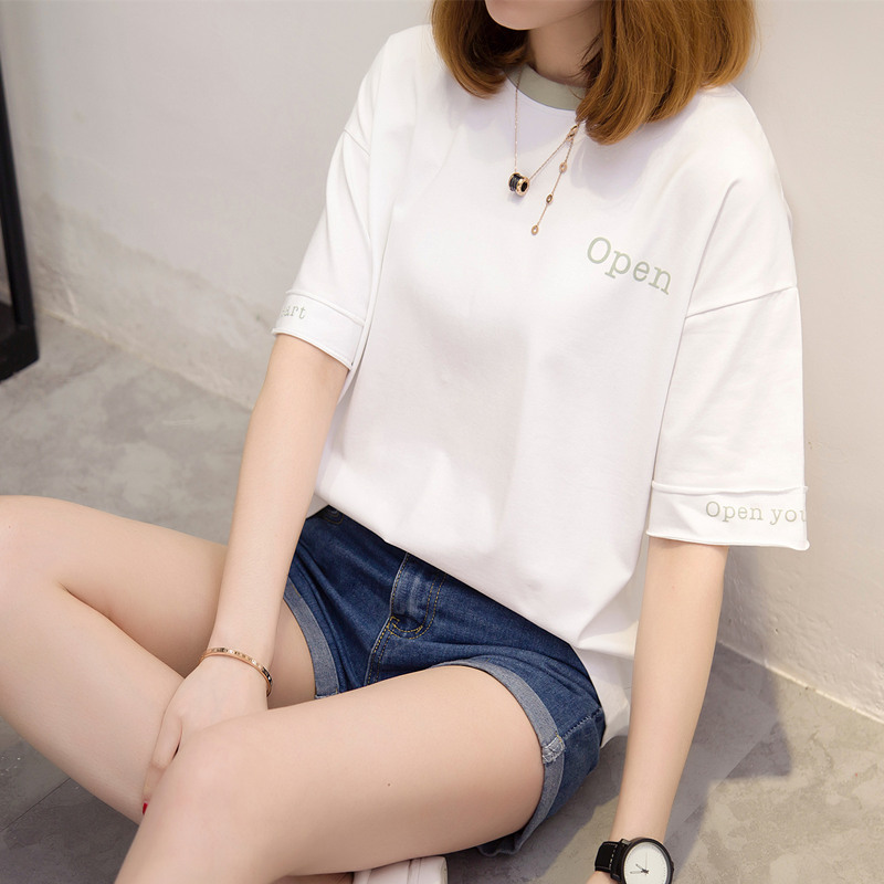 夏裝新款女裝白色t恤女短袖韓版字母體恤衫寬松上衣百搭衣服