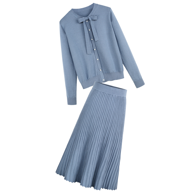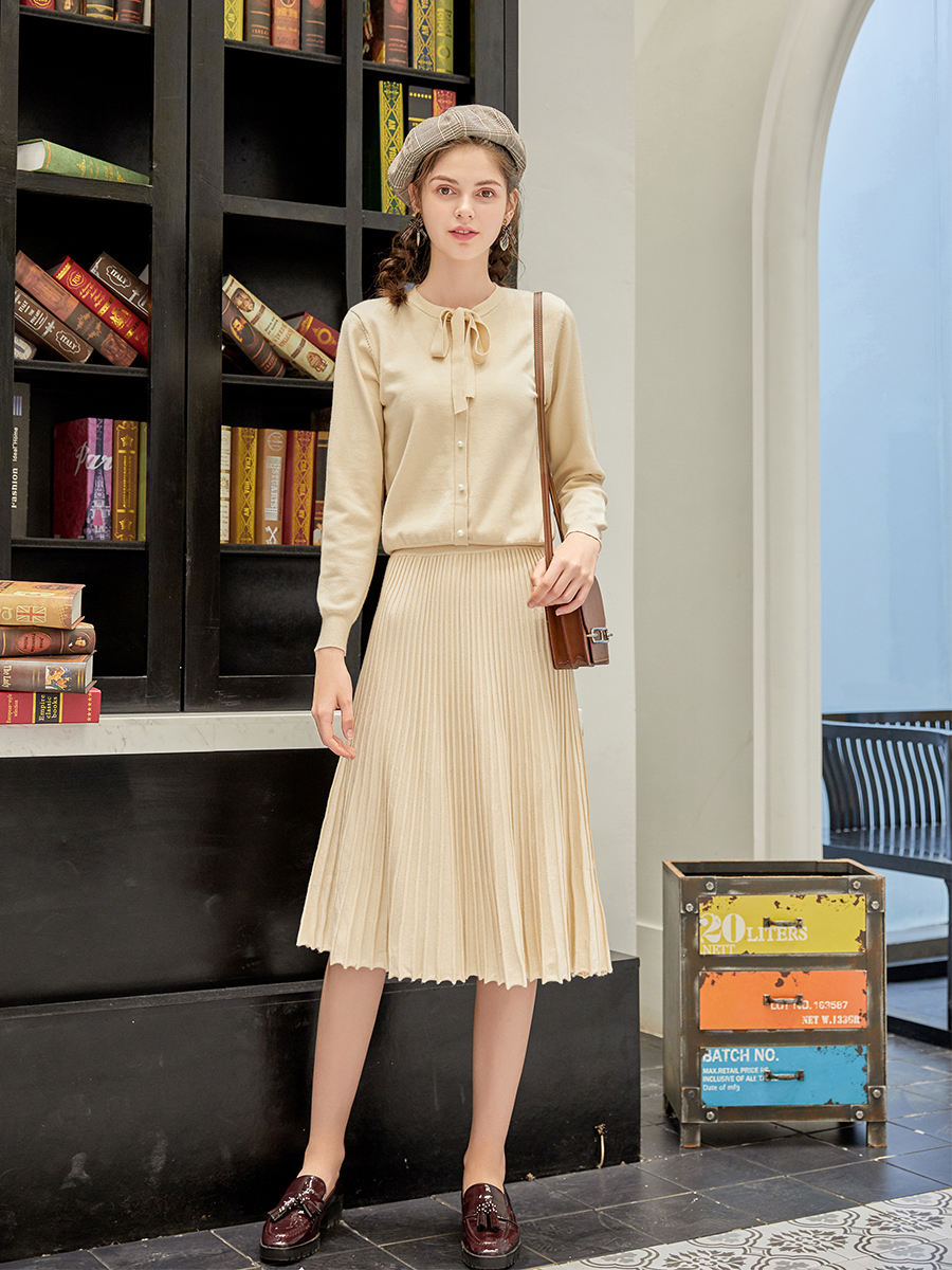 毛衣-米色|毛衣-霧藍色|半裙-米色|半裙-霧藍色