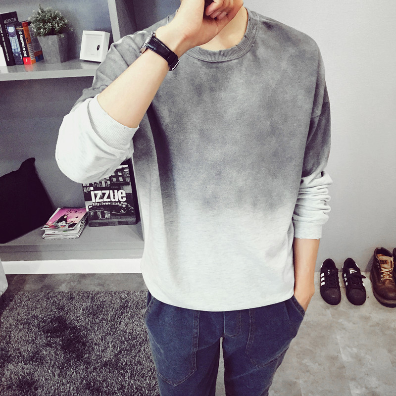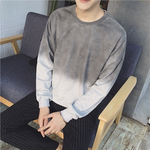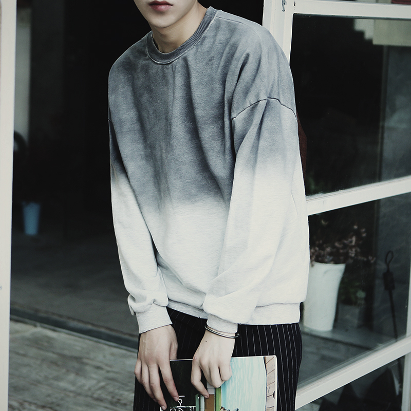 / 秋季新款日系復古百搭漸變色男士長袖圓領衛衣外套