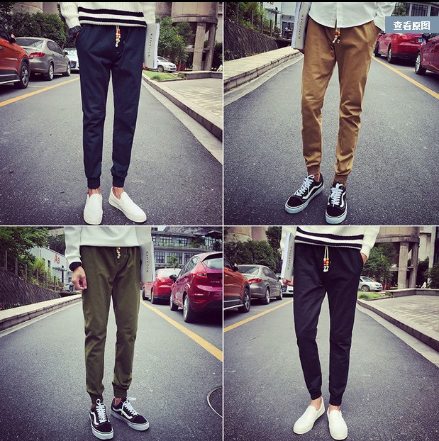/ 原創設計韓版修身小直筒男士休閑褲系繩束腳褲