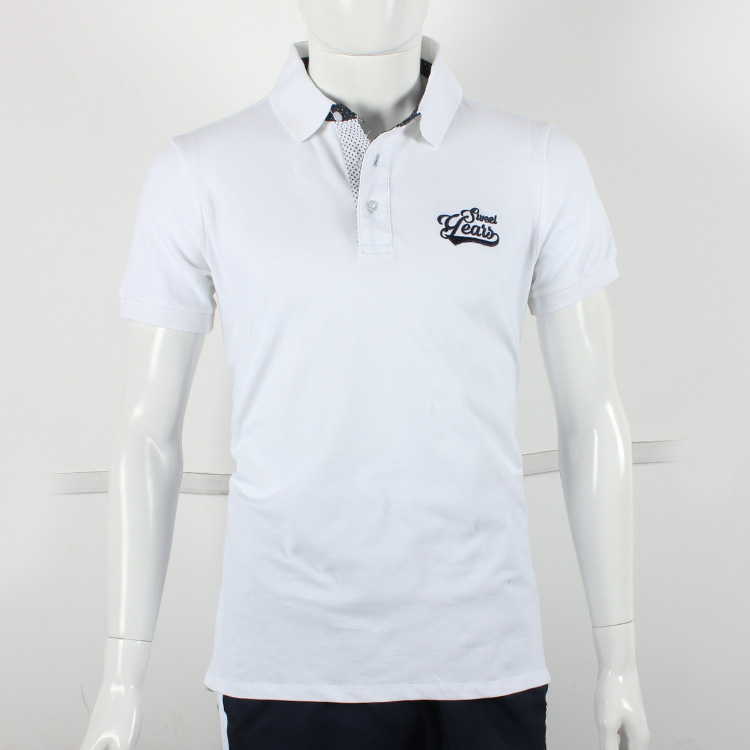 135-155斤 97%棉白色夏有彈力翻領短袖T恤 柔軟簡約男休閑polo衫