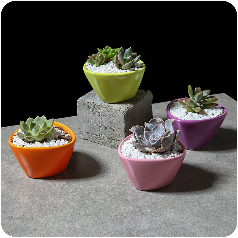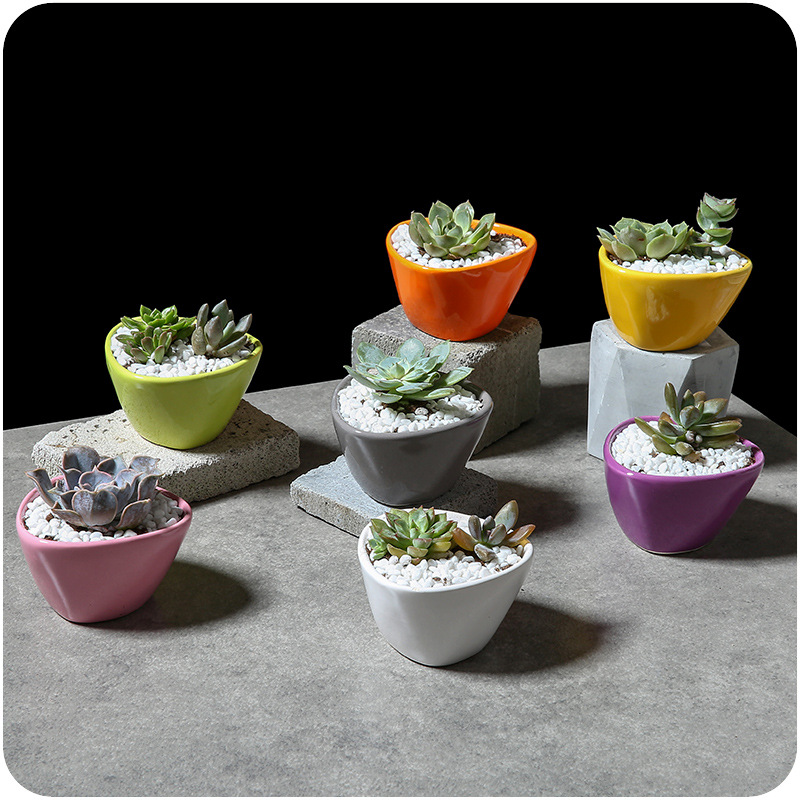 / 桌面創意純色多肉小花盆陶瓷花器糖果色盆簡約三角體圓形花卉盆子