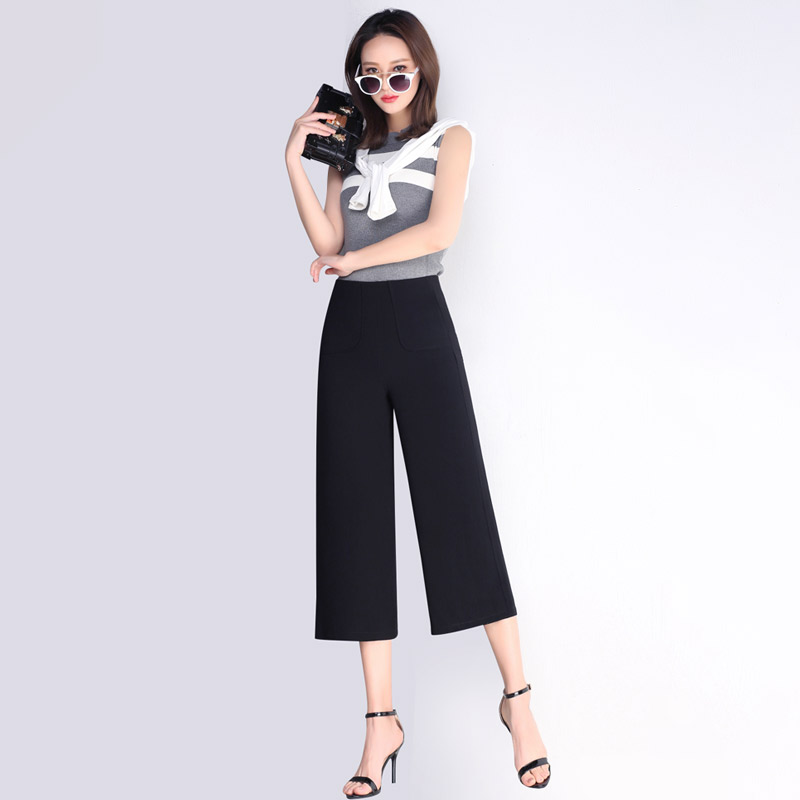 七分闊腿褲夏女高腰韓版學生顯瘦春季新款潮百搭寬松九分褲子