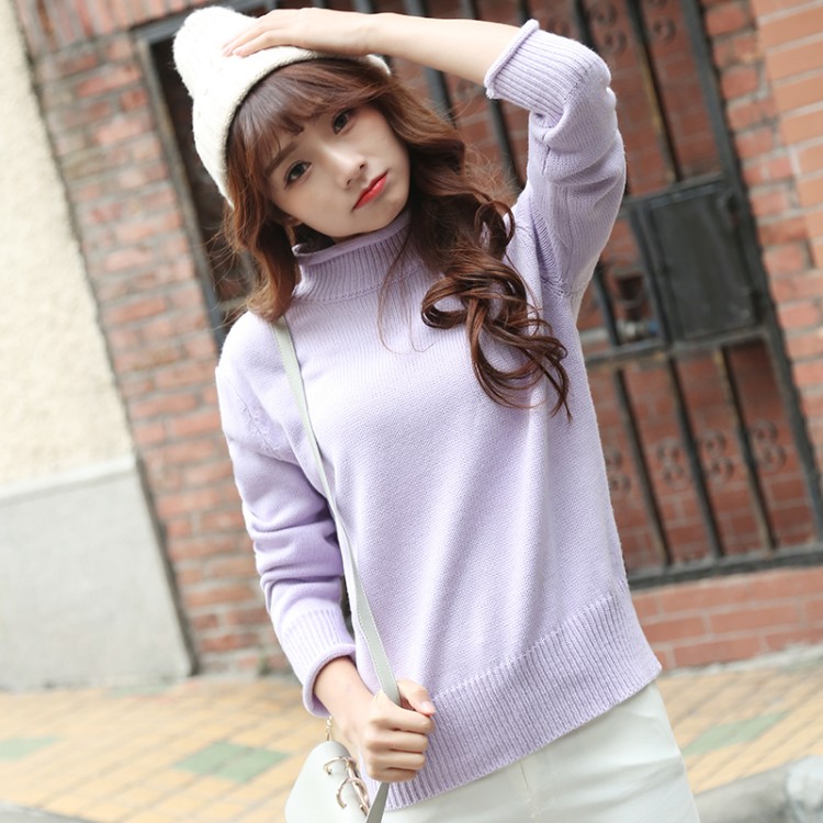 / 秋冬款韓國軟妹甜美糖果色高領套頭寬松學生百搭打底針織衫女