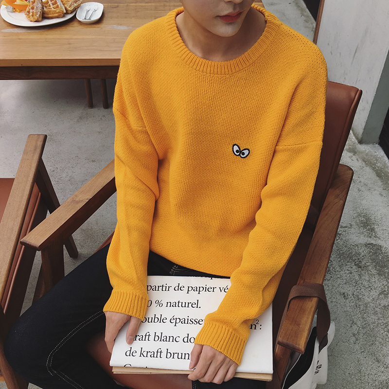 冬裝新款韓版修身圓領卡通純色打底衫男士毛衣外套