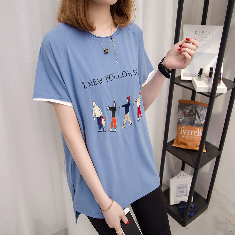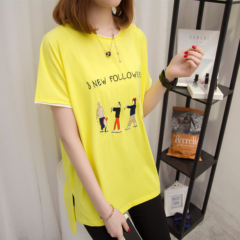 短袖t恤女春夏寬松韓版中長款白色打底體恤衫卡通女裝新款潮