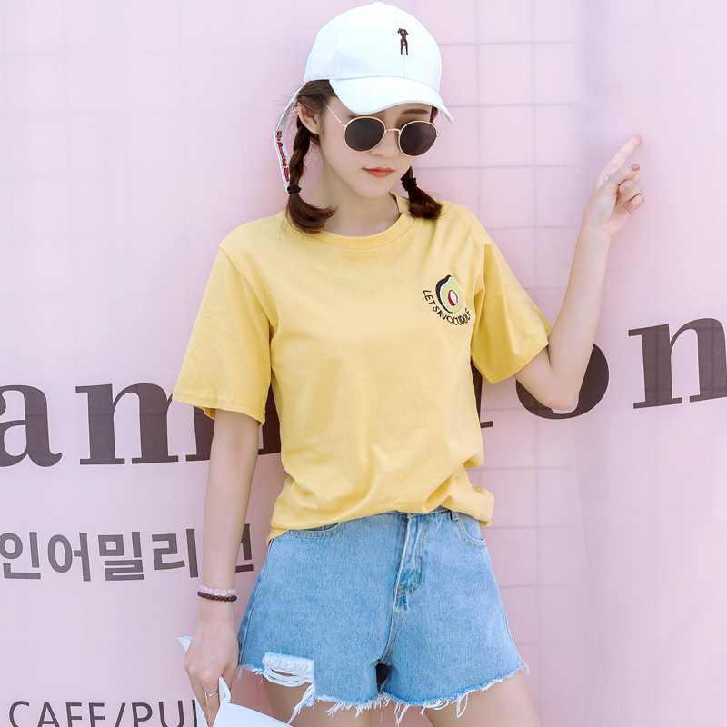 / 夏裝新款韓版女裝簡約圓領純棉T恤時尚刺繡短袖學院風上衣潮