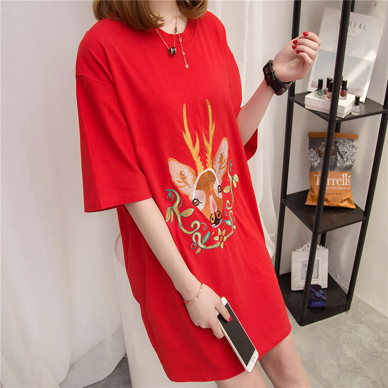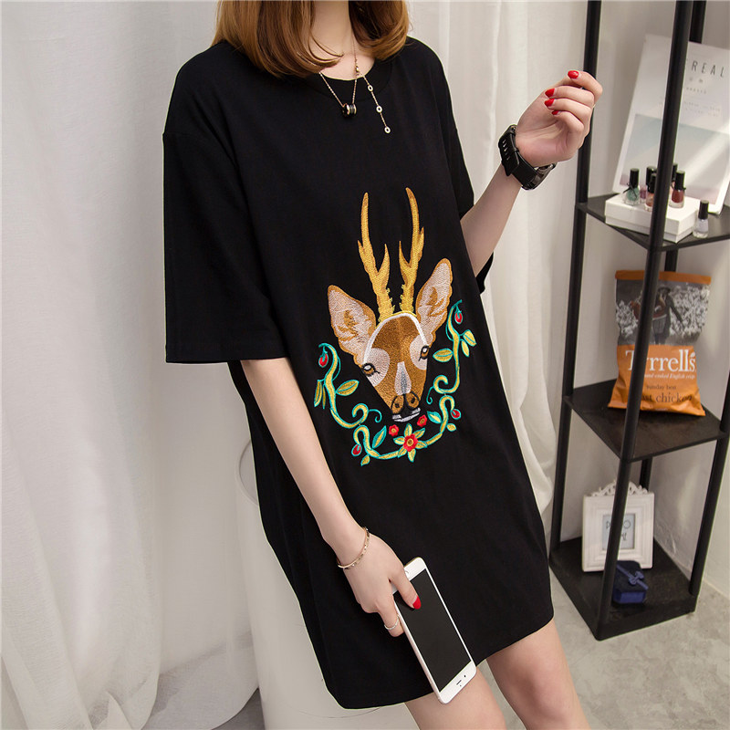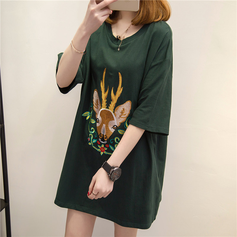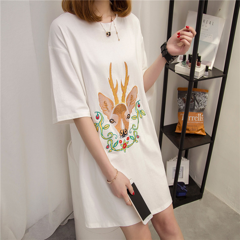 夏裝新款女裝白色短袖t恤女上衣寬松韓版中長款學生百搭體恤