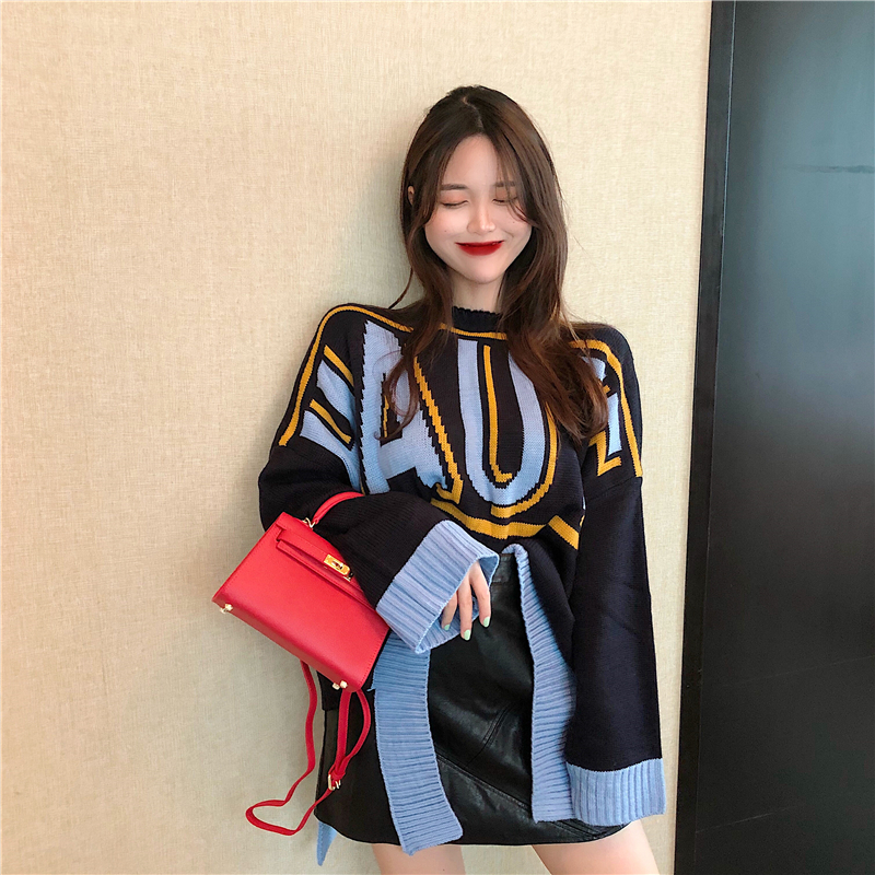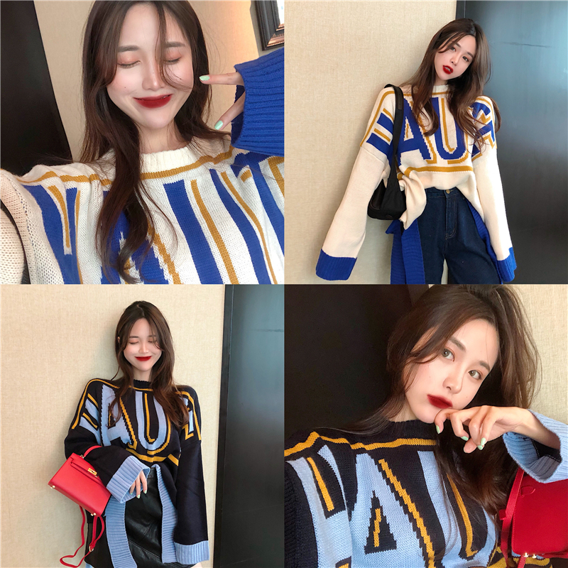針織衫2018秋裝圓領學生甜美上衣小清新韓版寬松慵懶風毛衣女套頭
