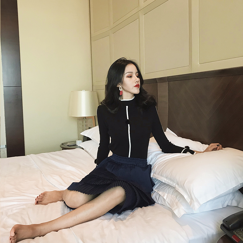 / 2018秋裝新款韓版晚晚風時尚套裝長袖打底衫上衣高腰蛋糕裙兩件套