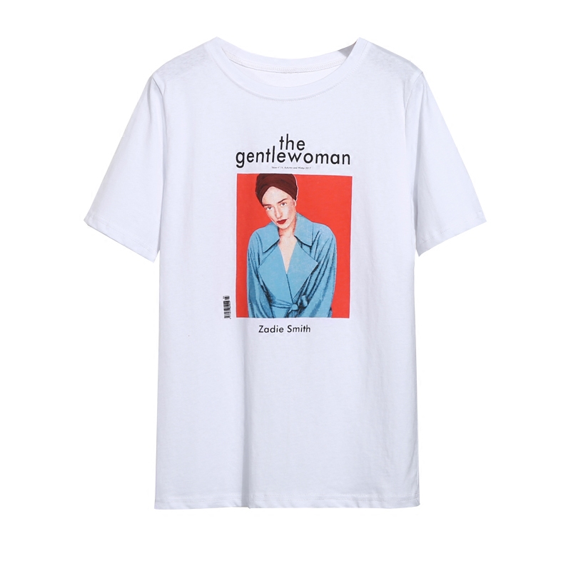 / 夏季新款韓版短袖T恤女裝寬松人物創意印花圓領純棉體恤上衣