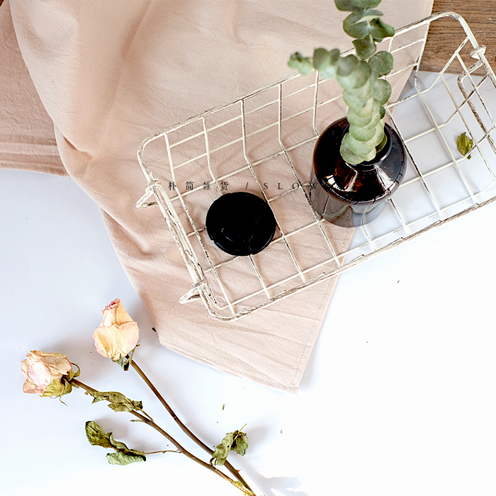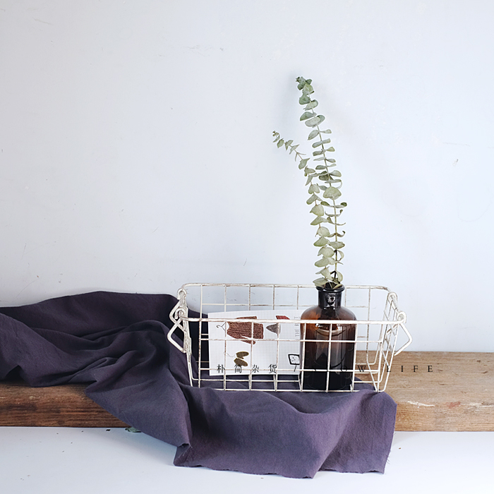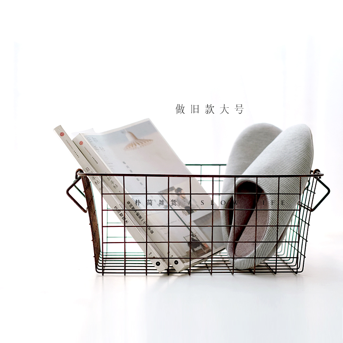日單 做舊復古工業風鐵藝籃子 書籍雜物收納籃儲物筐擺拍照道具
