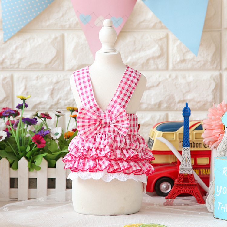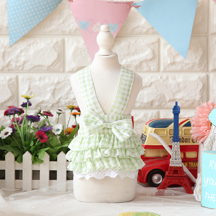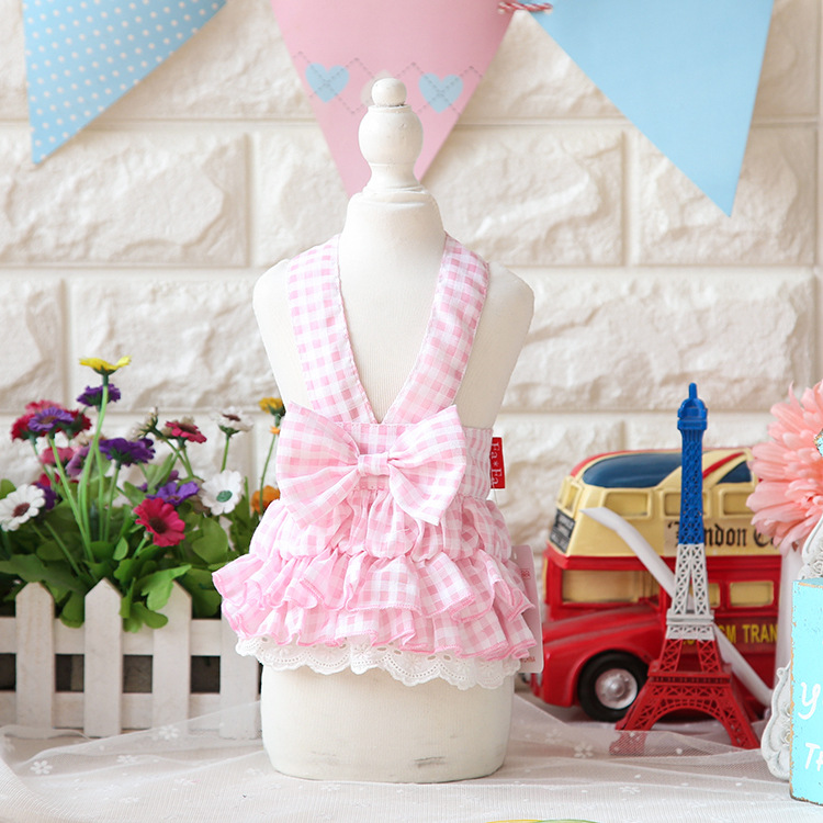 糖果の棉布格子背帶裙~寵物連衣裙泰迪可愛春夏裝比熊衣服約克夏