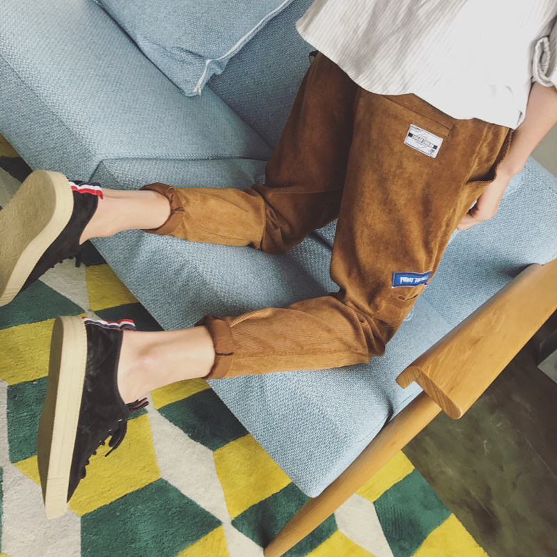 / 男裝日系小腳男士大碼休閑褲貼布撞色錐形修身男褲