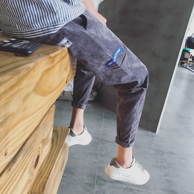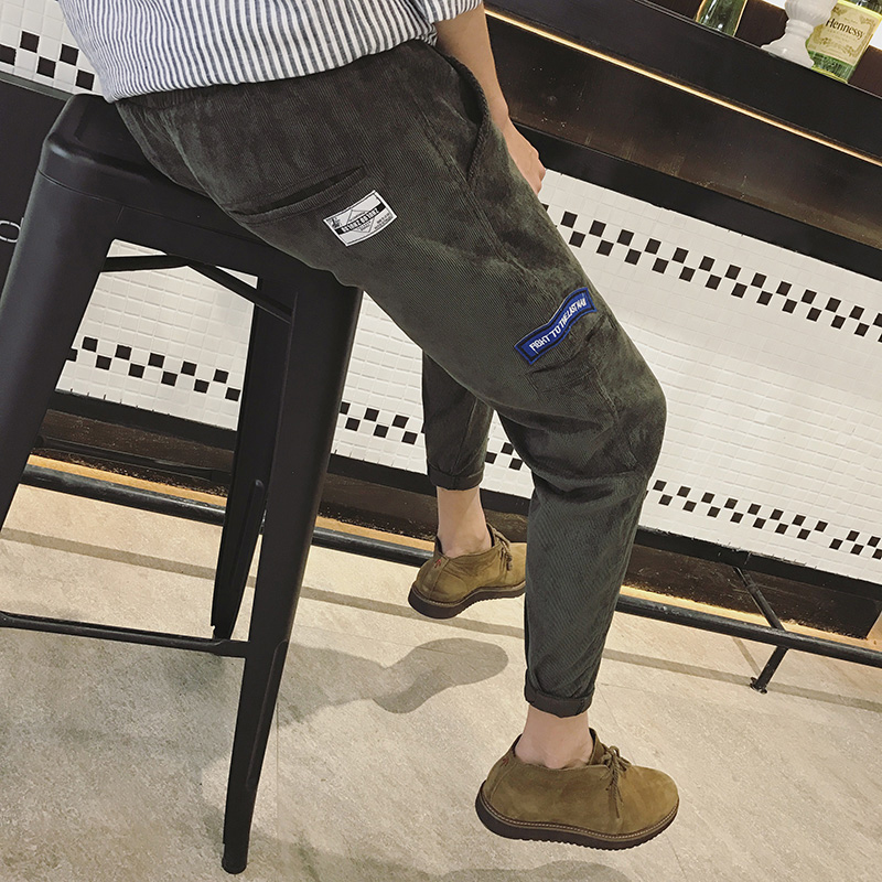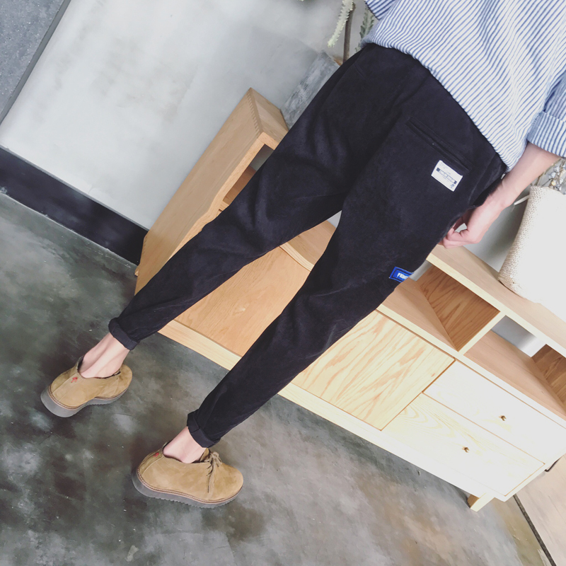 男裝日系小腳男士大碼休閑褲貼布撞色錐形修身男褲