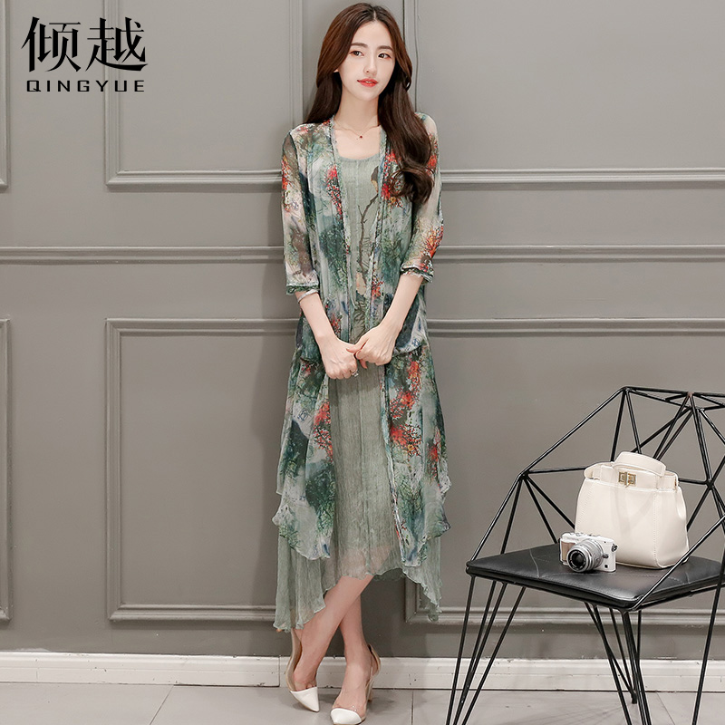 傾越2017春裝新款女裝韓版七分袖開衫兩件套套裝裙民族風連衣裙潮