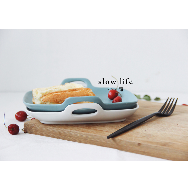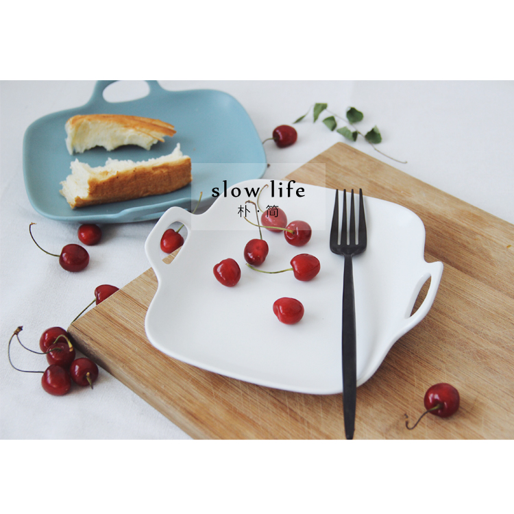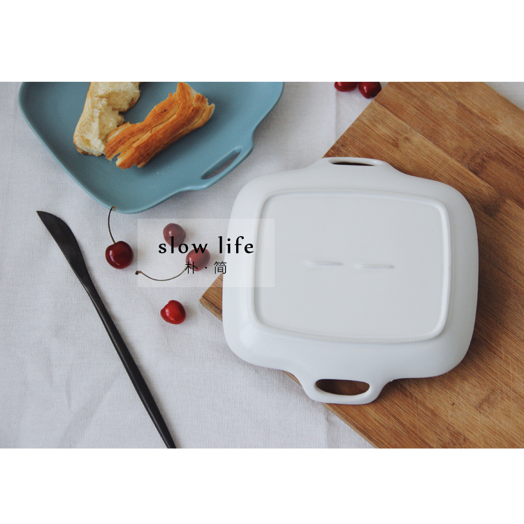 / 樸簡 純色啞光陶瓷餐盤西餐牛排盤 日式餐具菜盤子雙耳沙拉水果盤