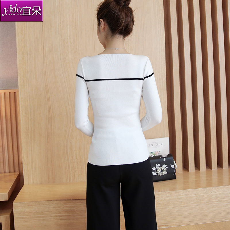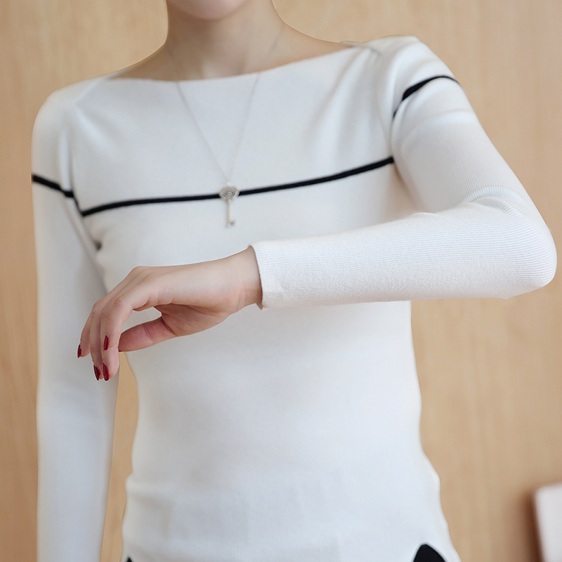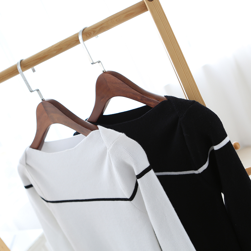 宜朵一字領針織打底衫女長袖修身毛衣女 春季新款套頭針織衫