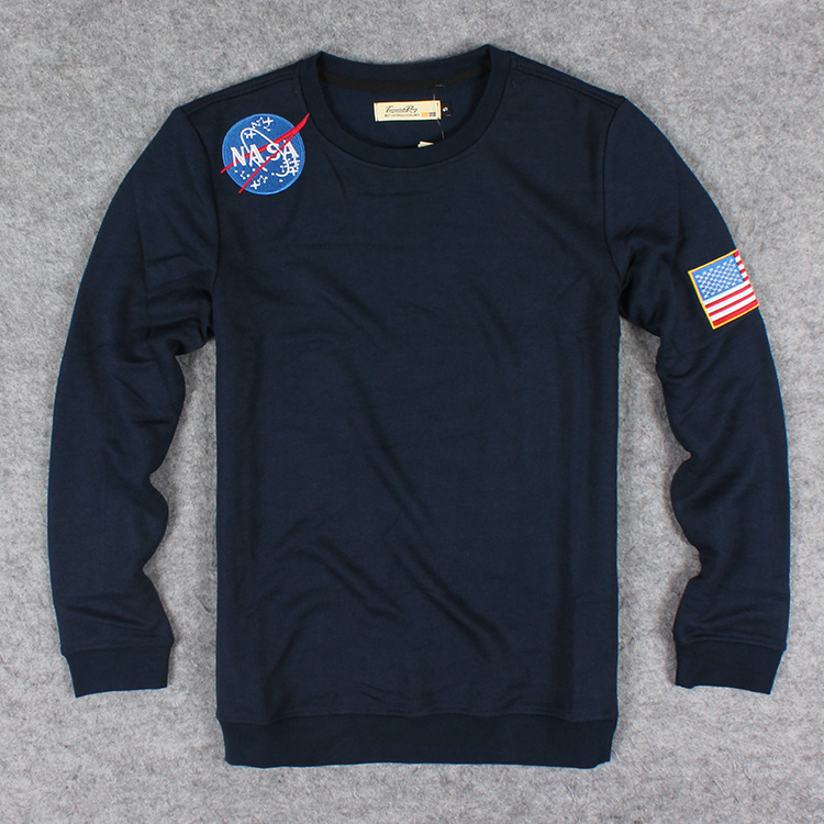 純棉春秋簡約薄款外套 時尚航空刺繡標 運動休閑男款套頭毛圈衛衣