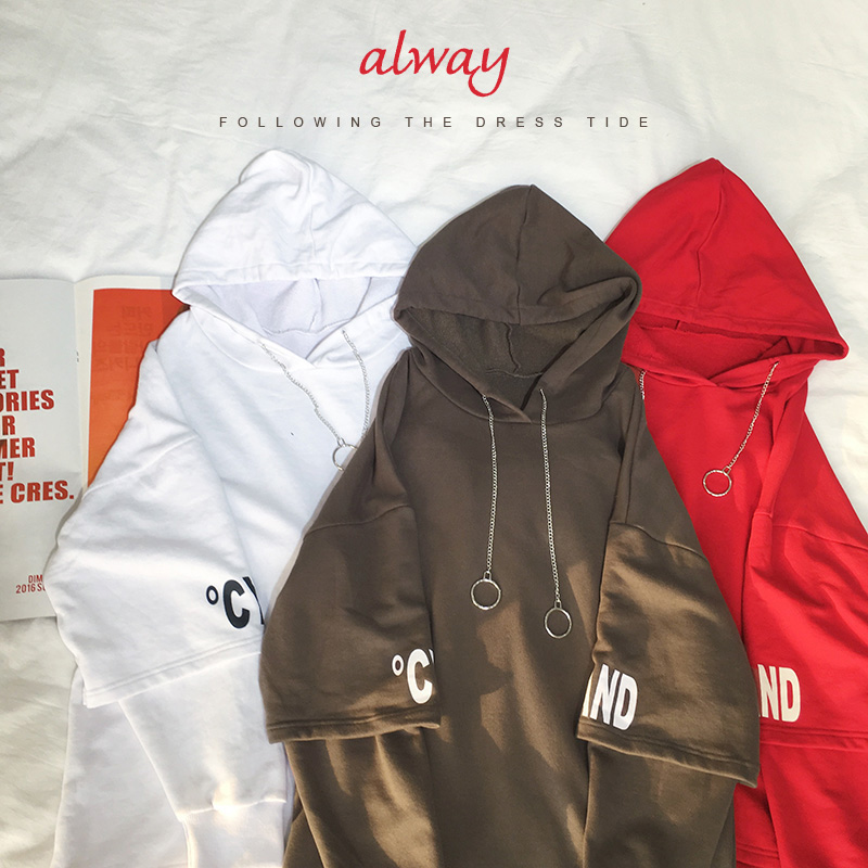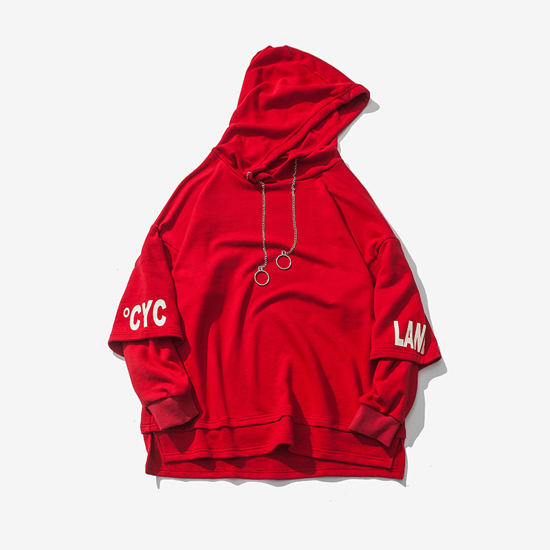 / 男裝韓版連帽印花假兩件袖男士寬松衛衣外套運動衫