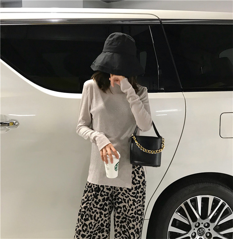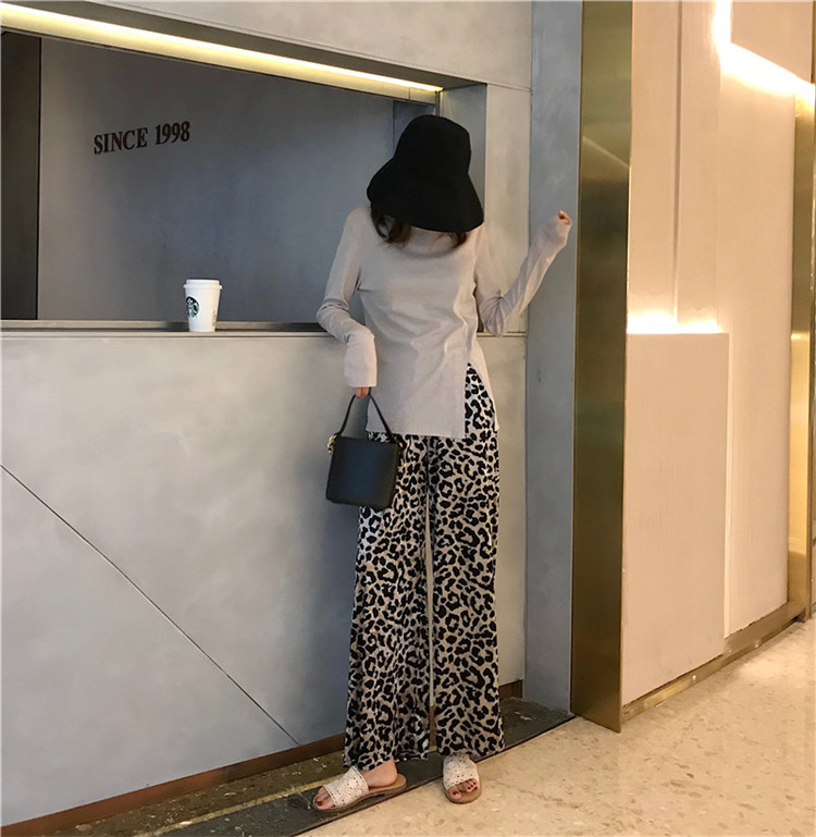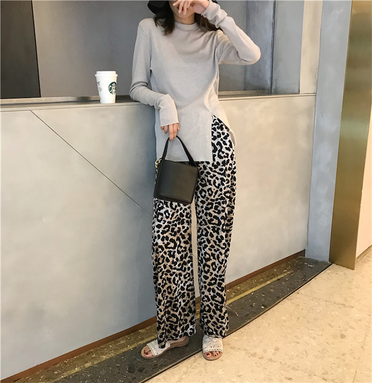 2018新款韓版顯瘦閃閃開叉長袖T恤絨面豹紋休閑長褲港風時尚套裝