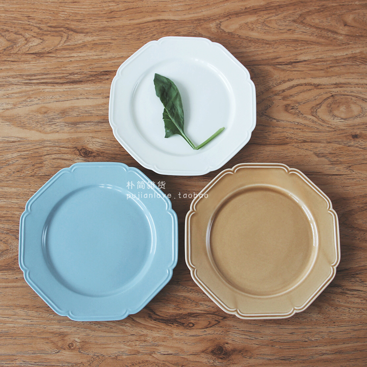 樸簡 北歐簡約花邊陶瓷餐盤日式8寸盤子 八角盤甜品蛋糕盤 餐具