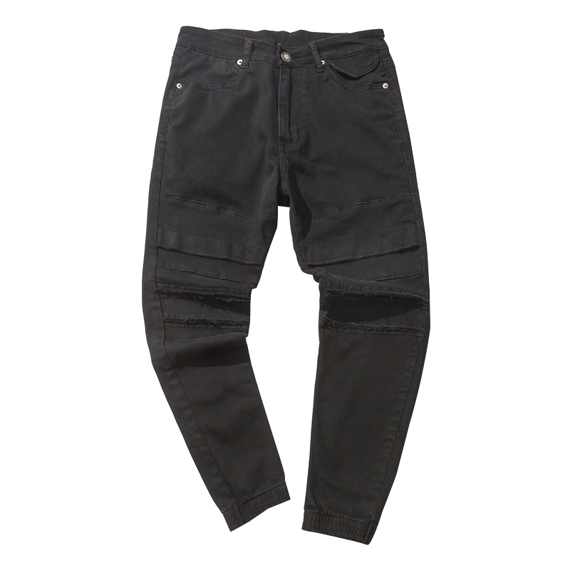 新款韓版修身褶皺膝蓋休閑褲束腳褲男士修身小腳褲