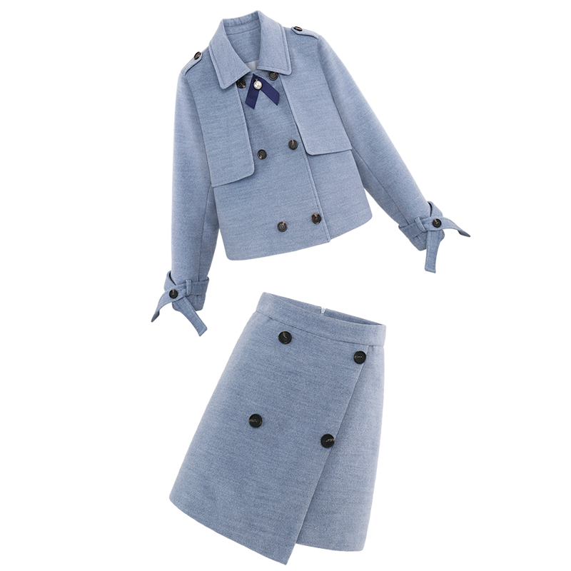 呢外套-灰藍色|半裙 灰藍色