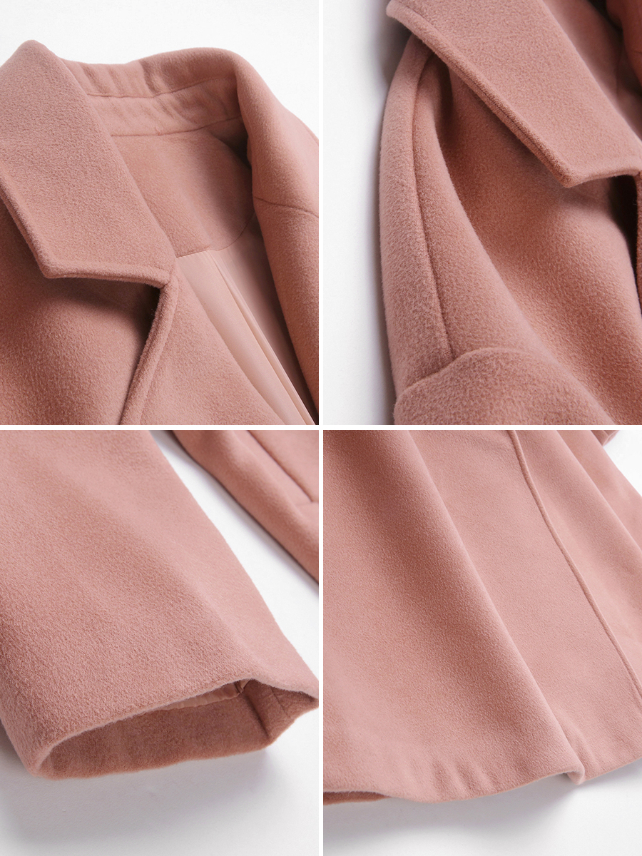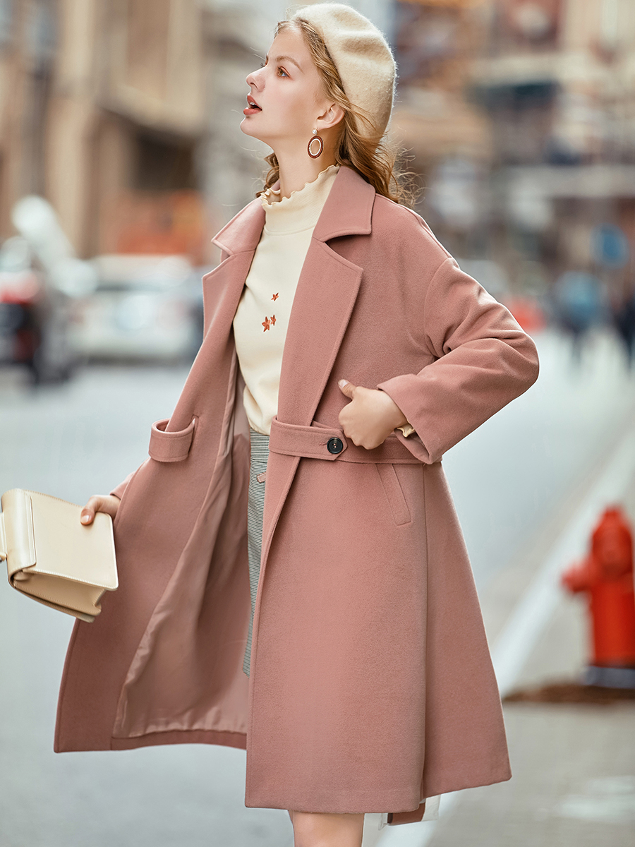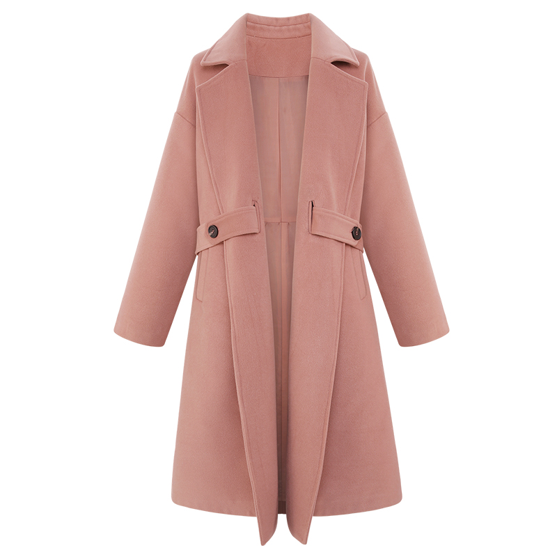 MG小象中長款過膝毛呢外套女寬松個性冬季新款粉色收腰呢子大衣潮