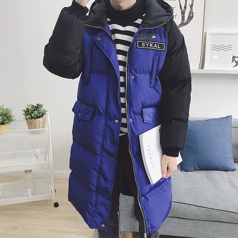 / 男裝拼色羽絨棉棉服韓版插肩袖男士長款棉衣外套