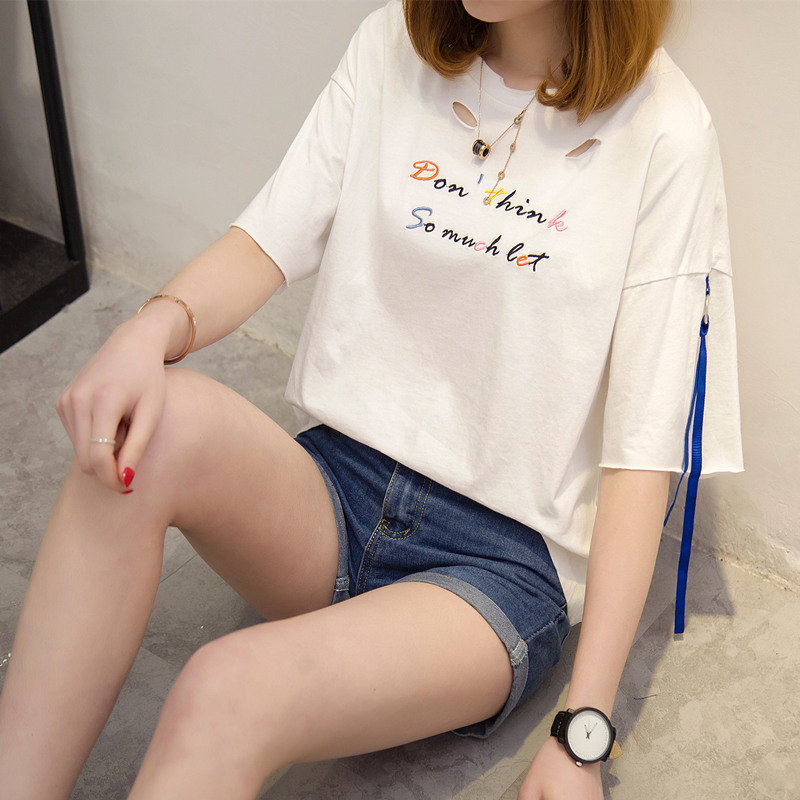 / 夏裝新款女裝白色t恤女半袖寬松上衣女夏韓版打底體恤衫百搭