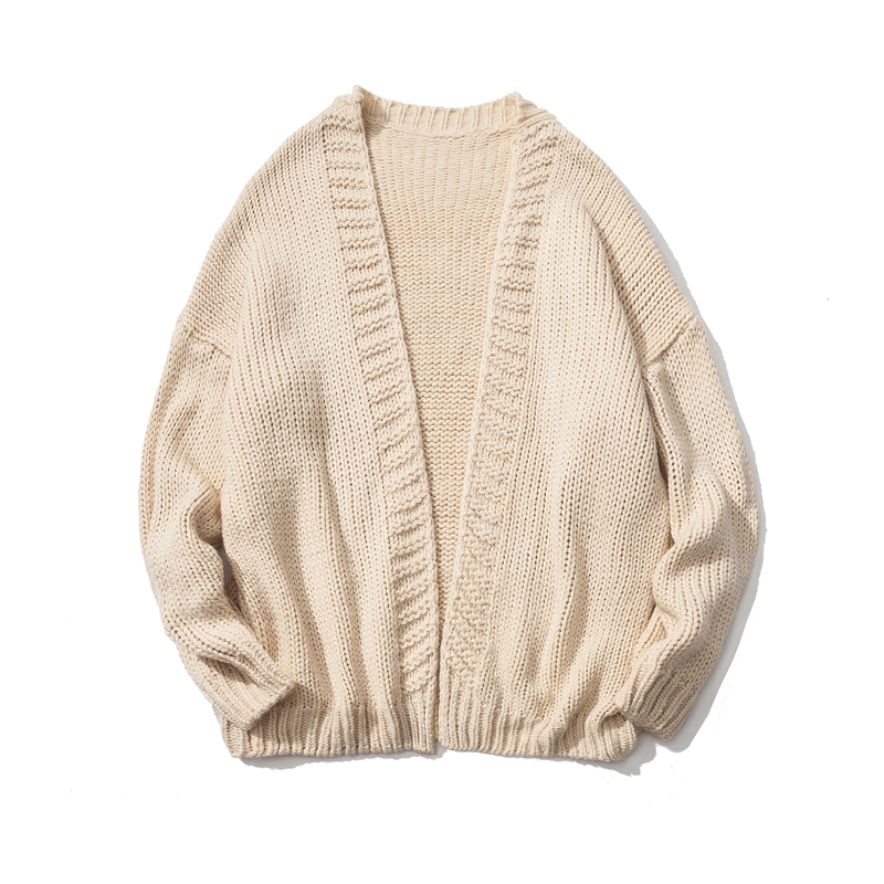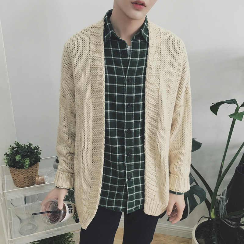 新款冬裝韓版純色男士毛衣開衫男士粗線針織衫外套