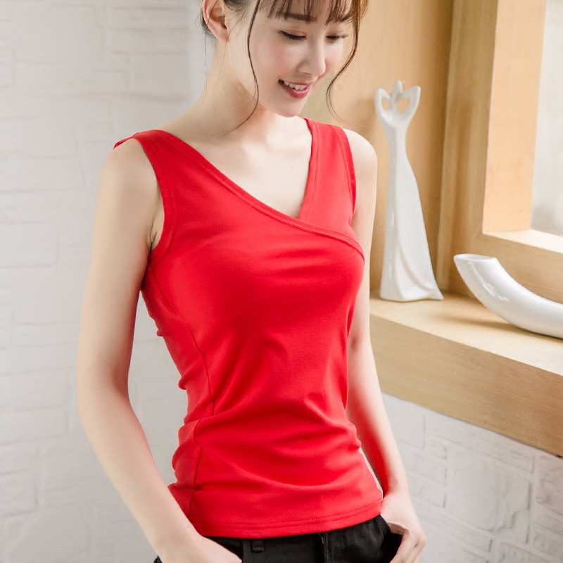 / 春夏新款棉百搭外穿背心女吊帶V領內搭打底衫大碼顯瘦上衣