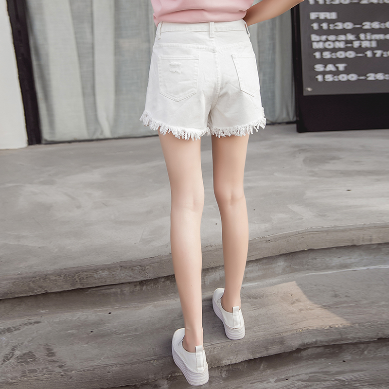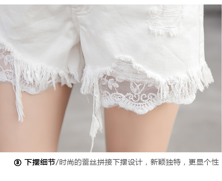 / 夏季韓版高腰破洞牛仔短褲女闊腿褲大碼蕾絲拼接大碼排扣學生熱褲