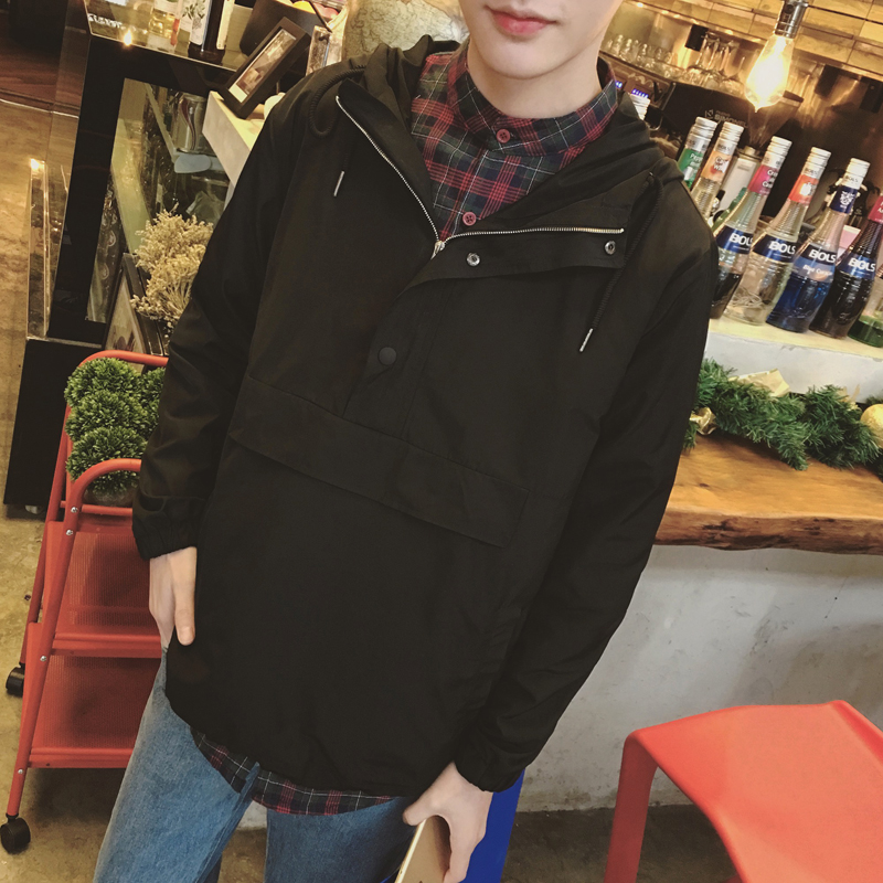 秋季新款男士港風小清新連帽純色薄款長袖衛衣