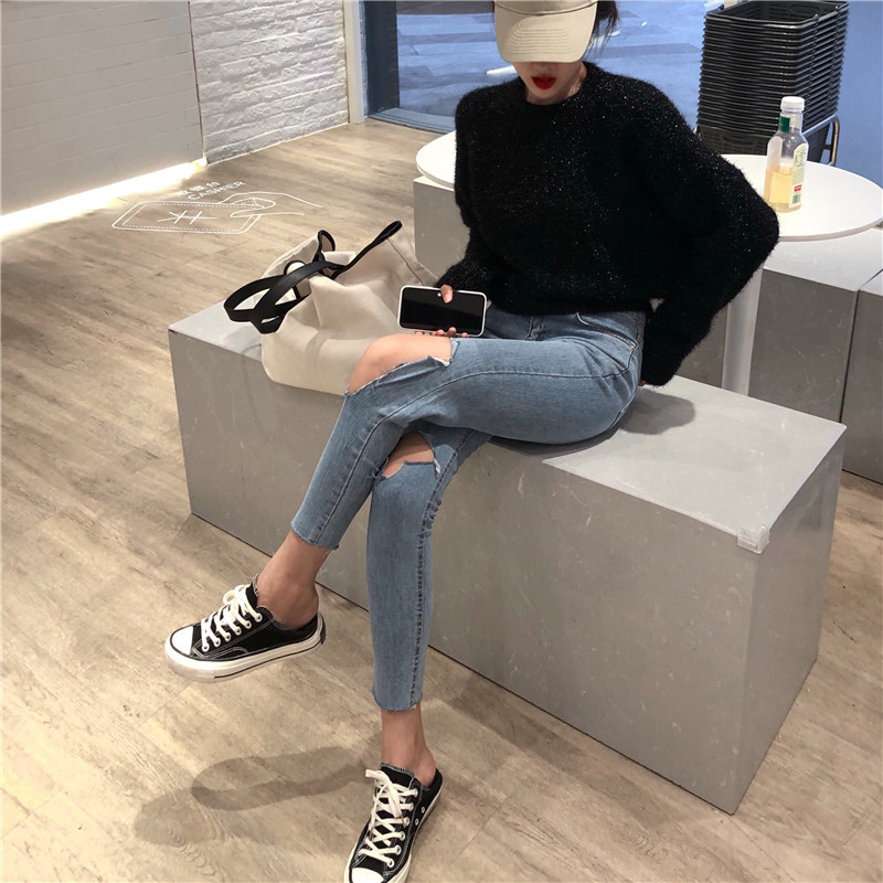 / 毛衣女2018新款慵懶風閃閃套頭寬松上衣chic早秋針織衫長袖百搭潮