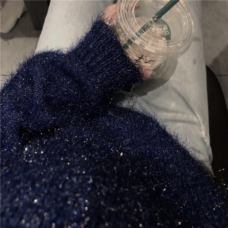 毛衣女2018新款慵懶風閃閃套頭寬松上衣chic早秋針織衫長袖百搭潮