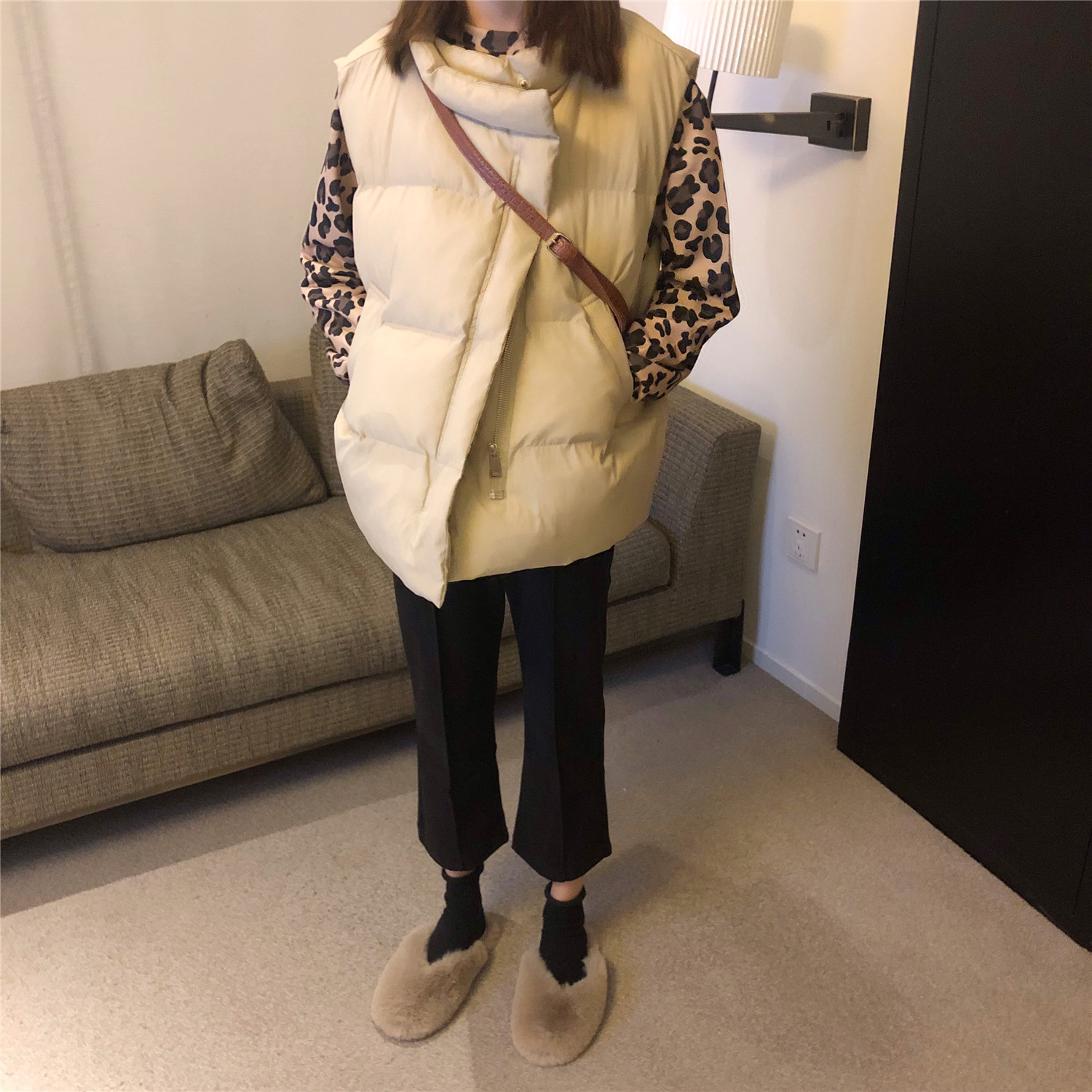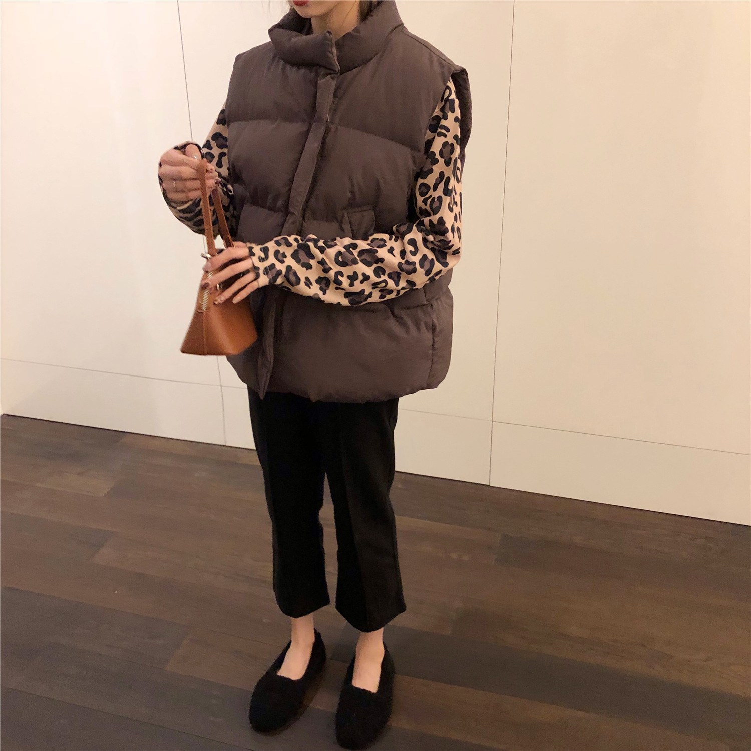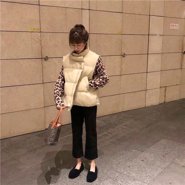 / 韓版新款百搭馬甲加厚背心面包棉衣豹紋內搭呢子拼接褲子時尚套裝