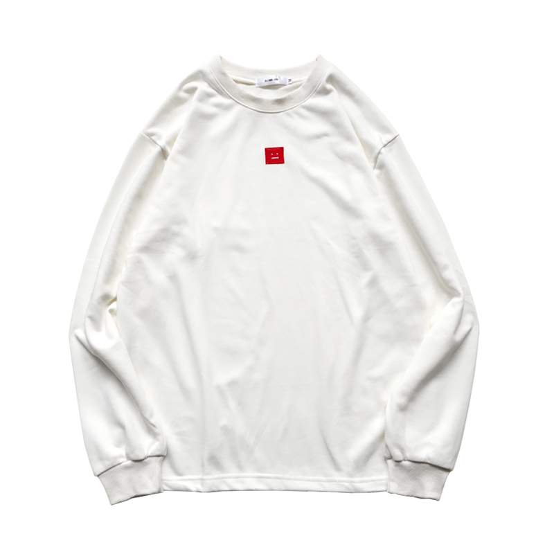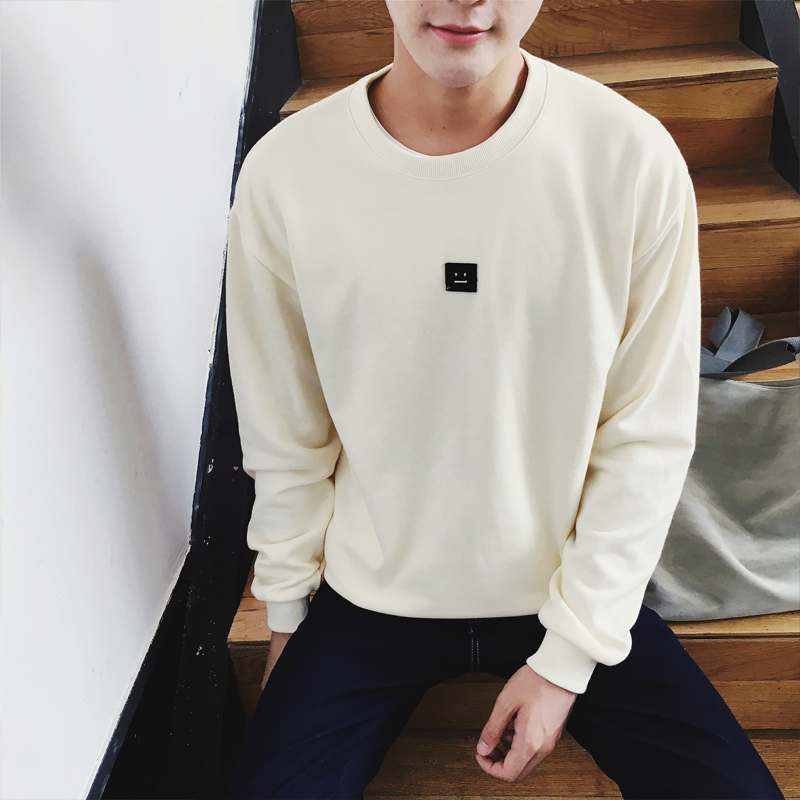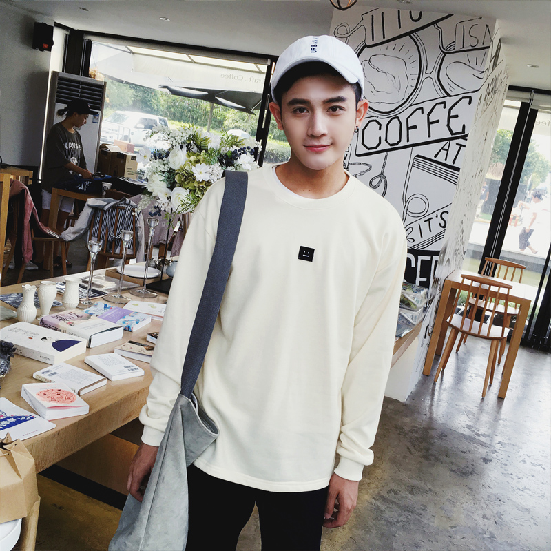 原創笑臉貼布裝飾潮男寬松落肩衛衣韓版港風外套秋