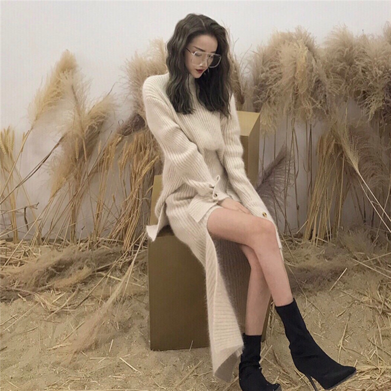 秋裝新款不規則套頭上衣高腰半身裙針織時尚設計感套裝兩件套女潮
