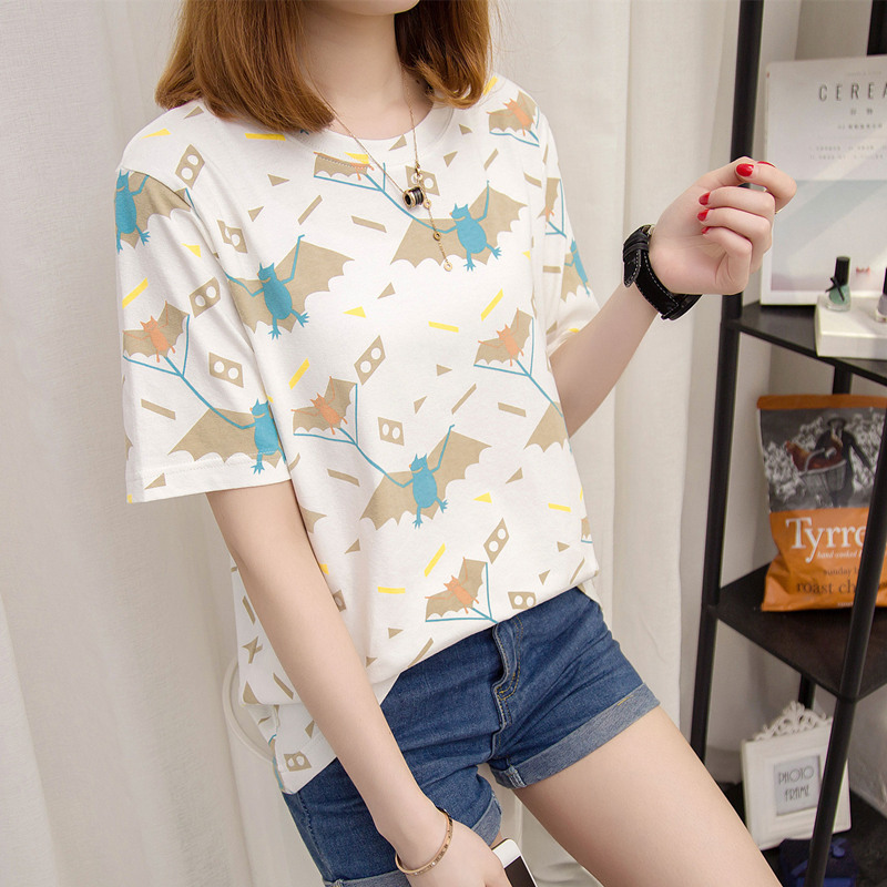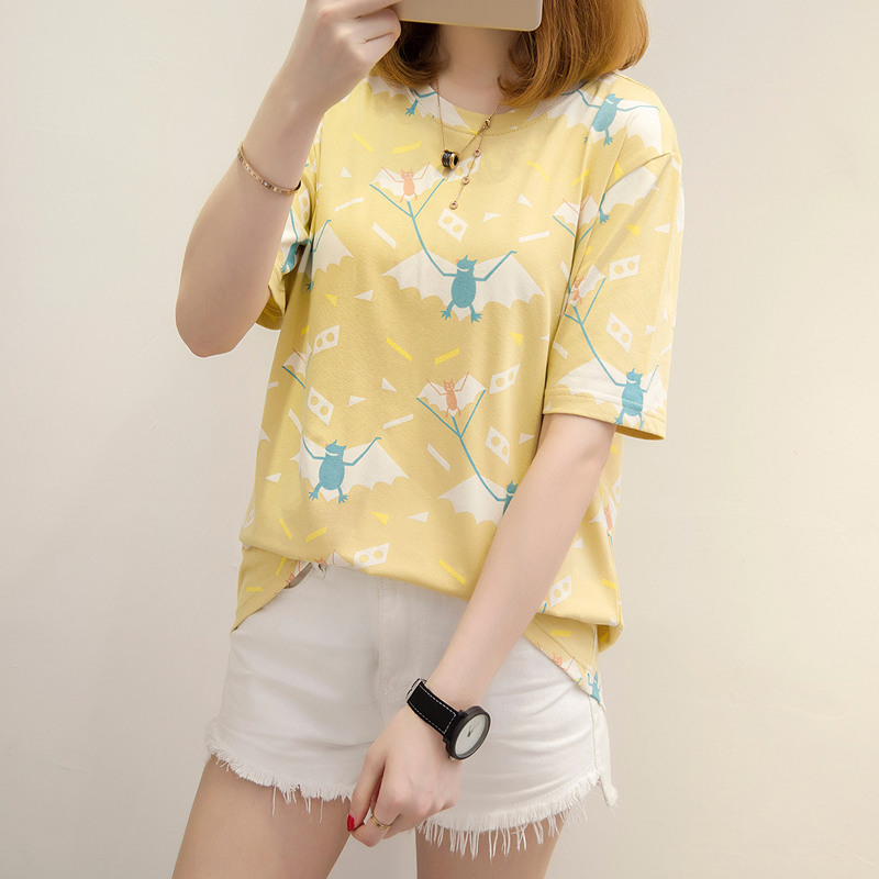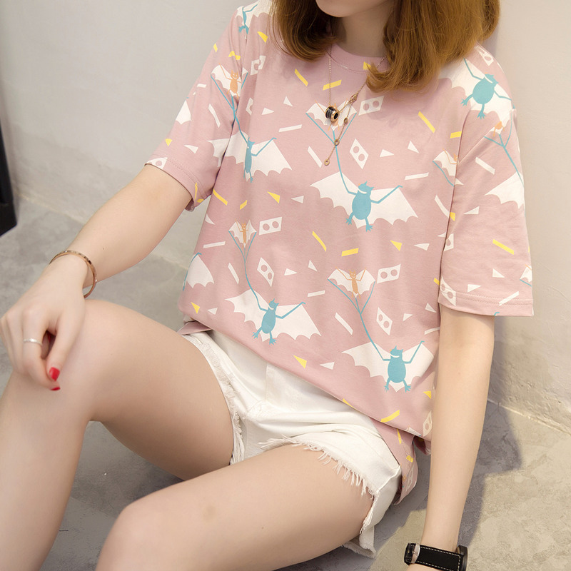 寬松t恤上衣衣服女夏卡通休閑百搭打底韓版體恤衫短袖女新款