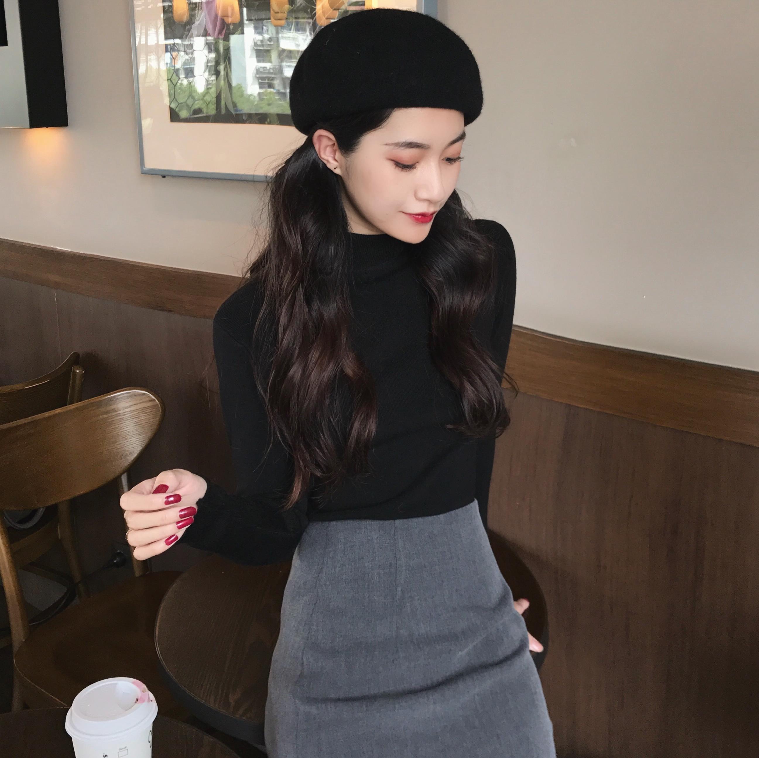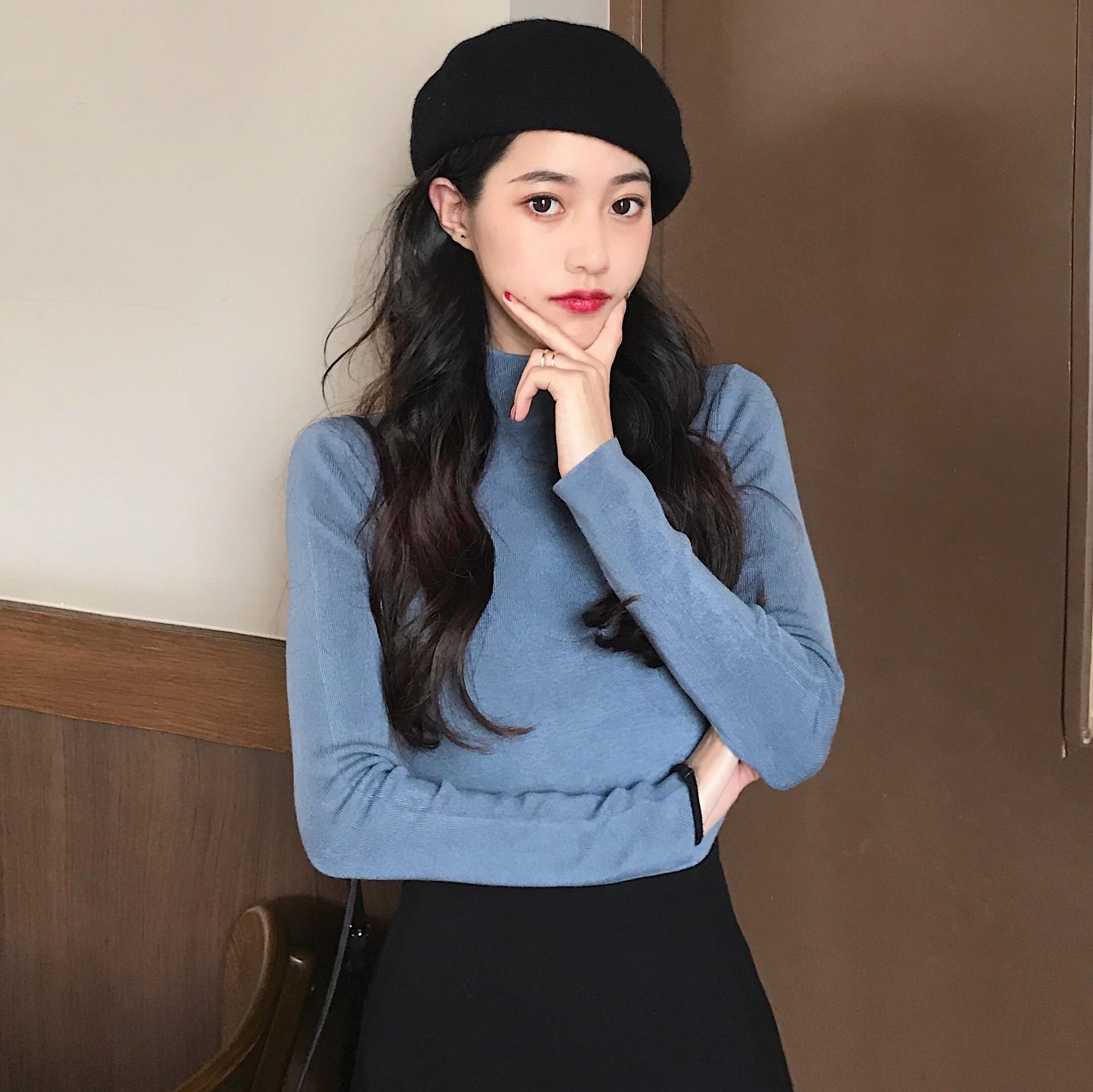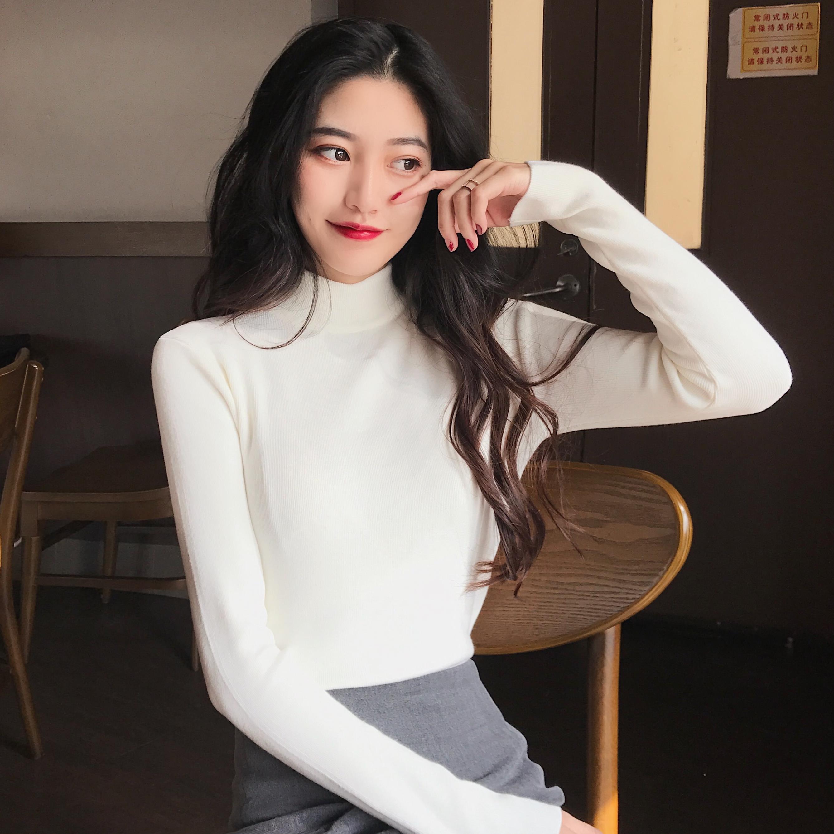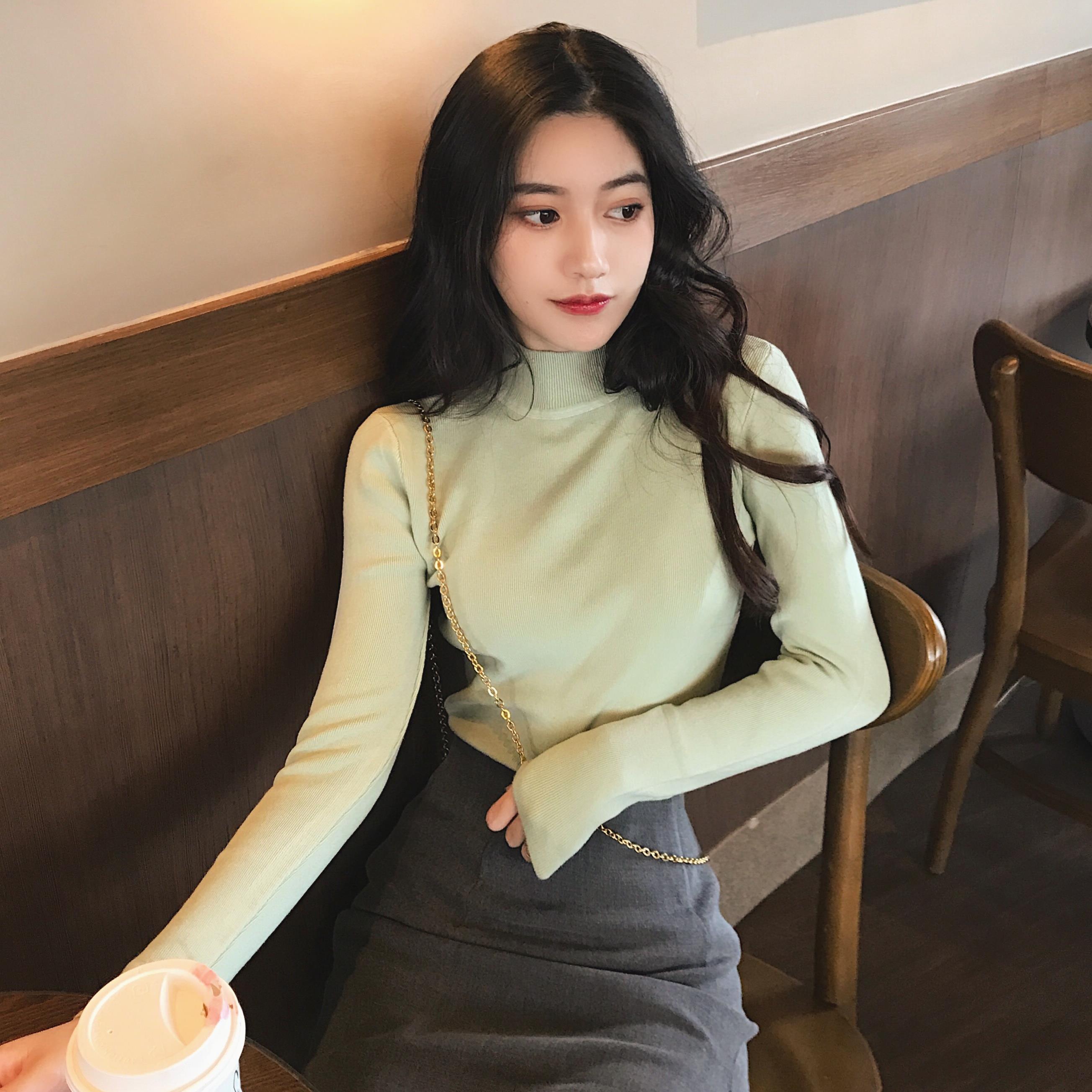 / 網紅套頭半高領打底毛衣女秋冬百搭修身針織衫上衣