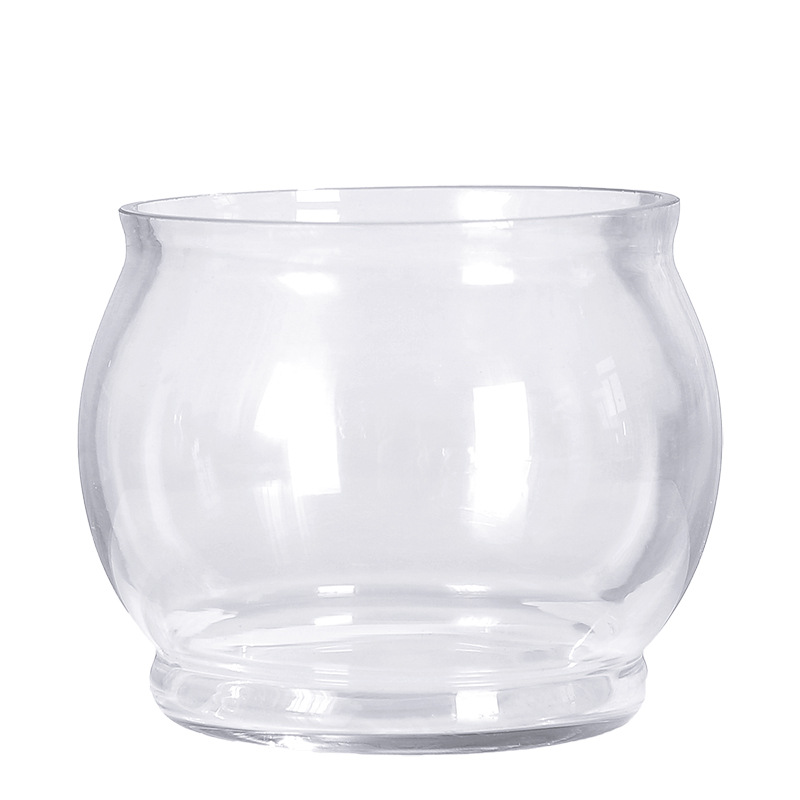 歐式復古簡約大肚小臺球玻璃花盆客廳辦公室平口水培花容器皿養魚