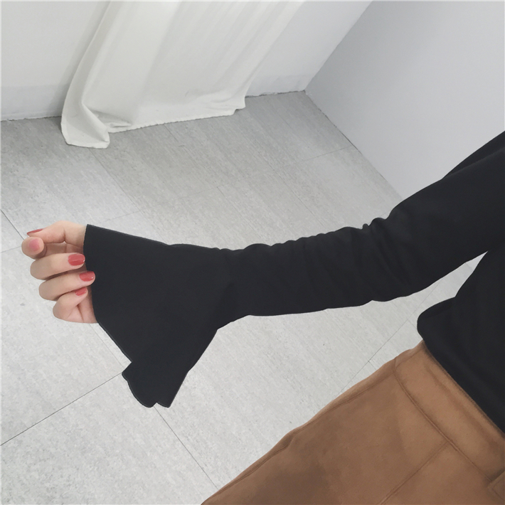 / 韓國chic秋冬簡約百搭半高領厚實喇叭袖套頭修身打底衫T恤女