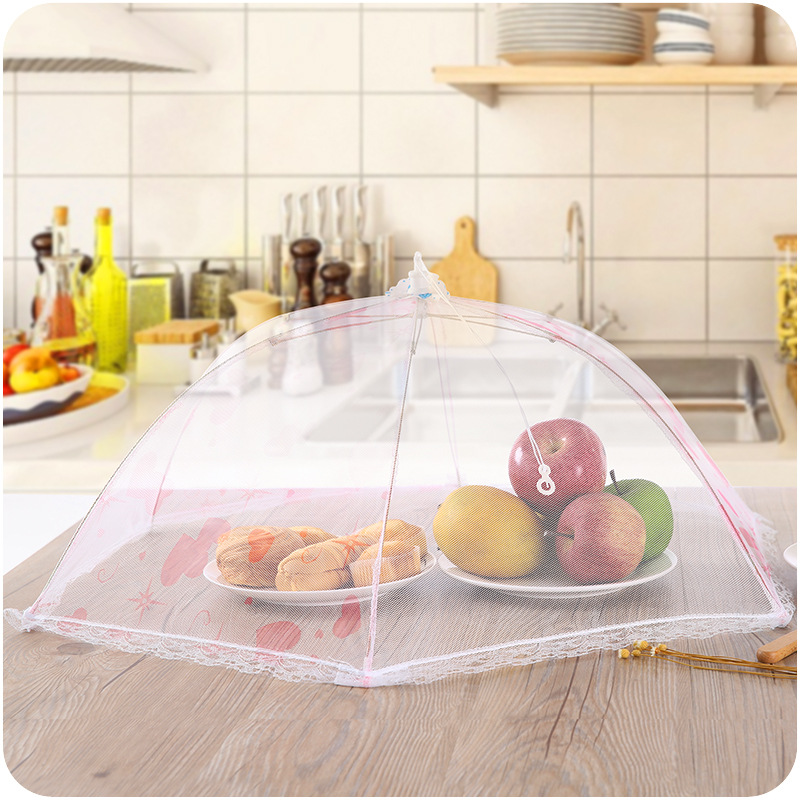 廚房防蟲蒼蠅餐桌食物防塵菜罩 居家蕾絲可折疊16/18寸圓形傘狀罩