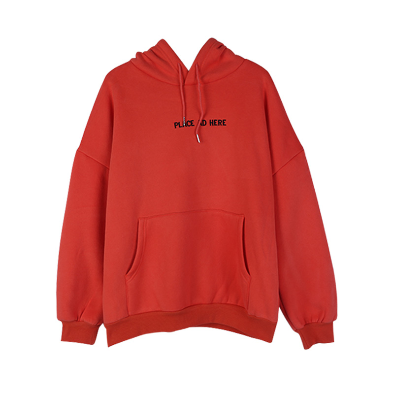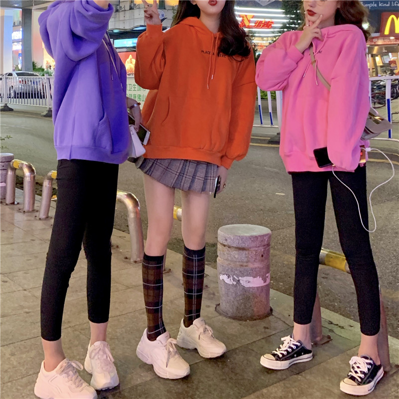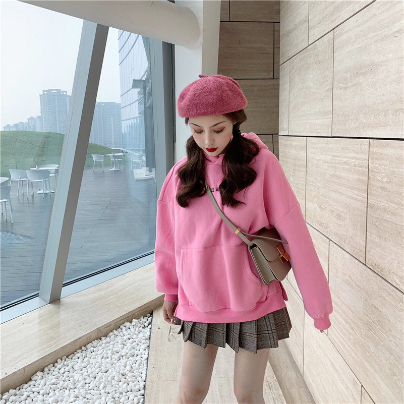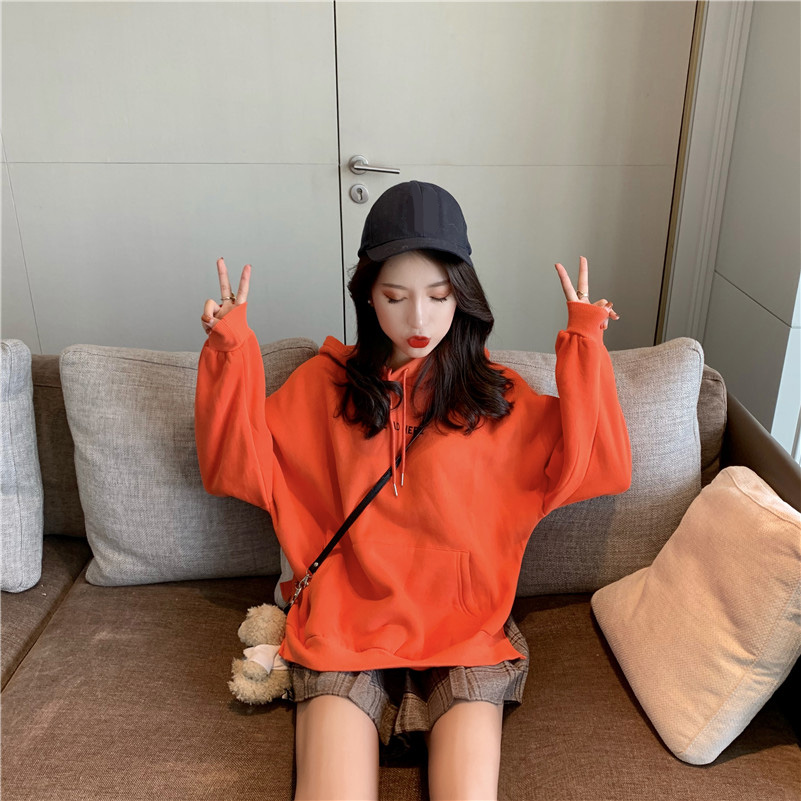 / 字母刺繡連帽加絨衛衣秋季女裝韓版chic慵懶百搭休閑長袖套頭上衣
