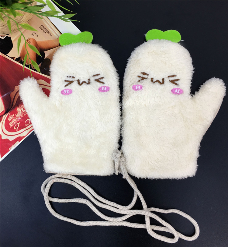 / 冬季韓版可愛萌萌噠保暖卡通布藝全指連指學生掛脖毛絨手套女
